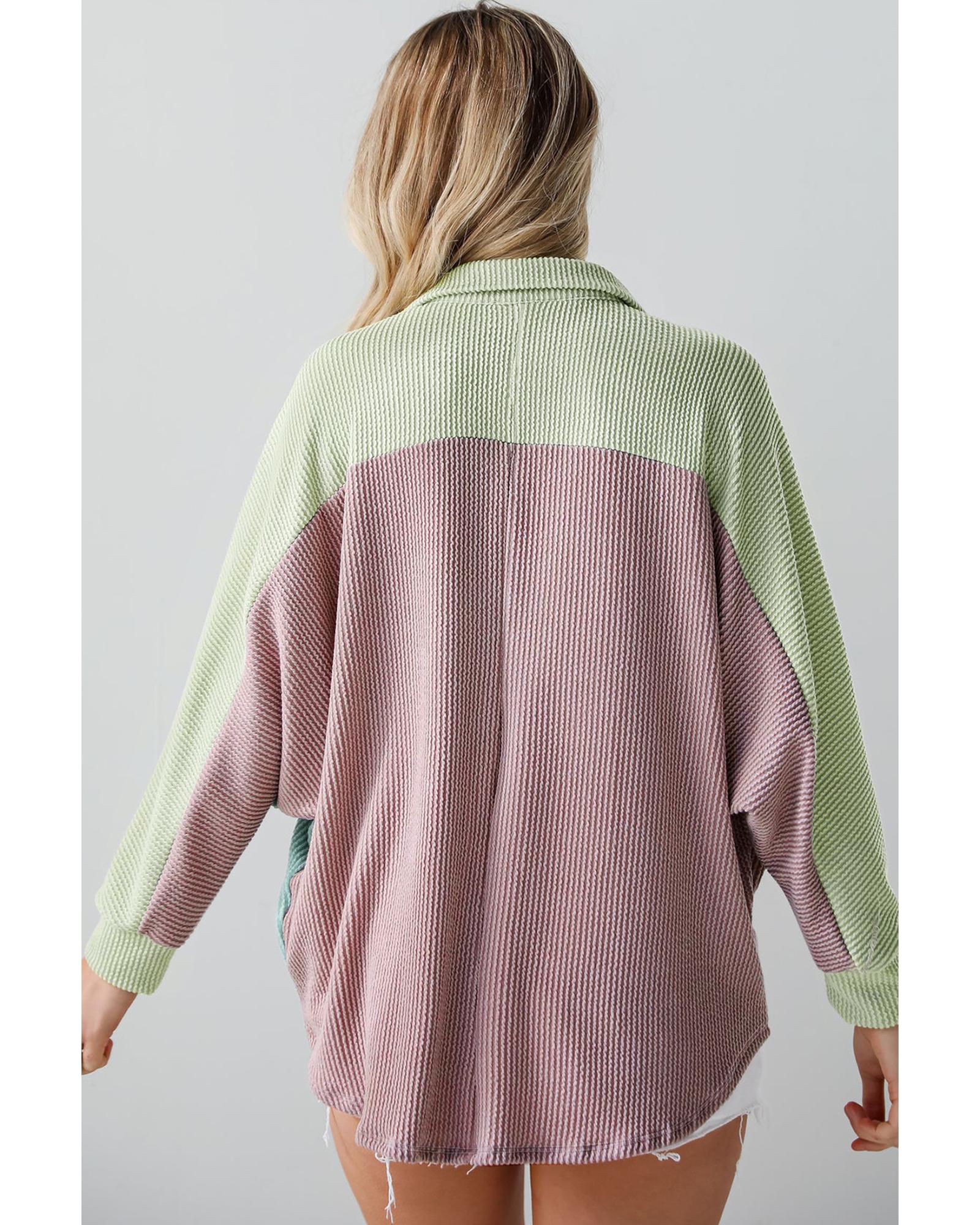 Phalaenopsis Color Block Corded Buttoned Oversized Shacket – L