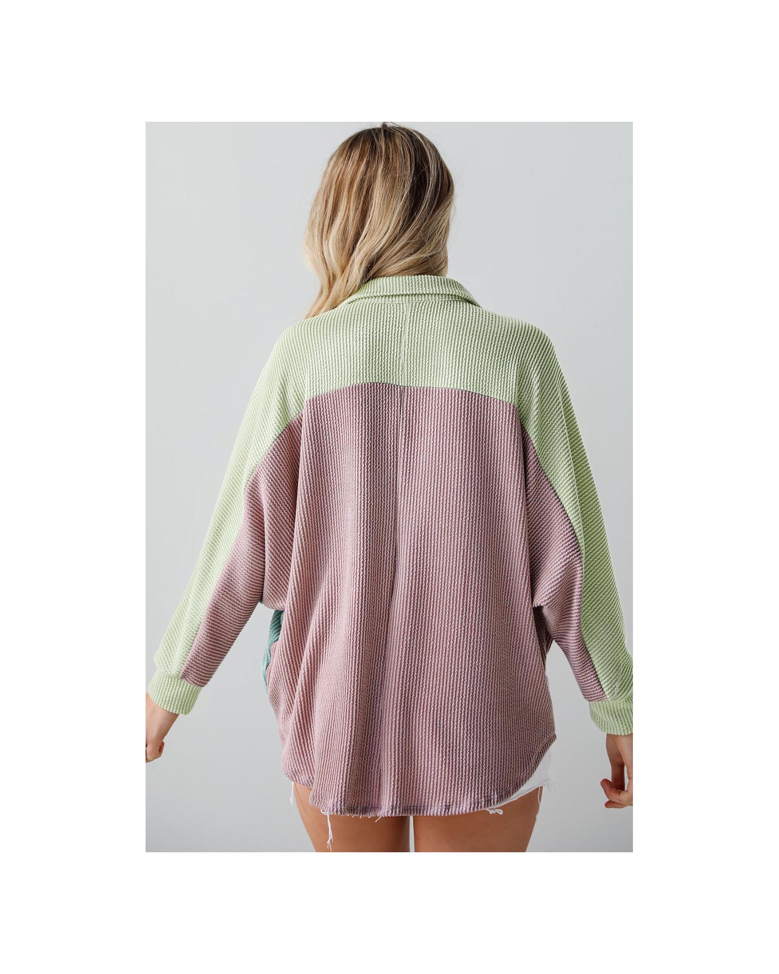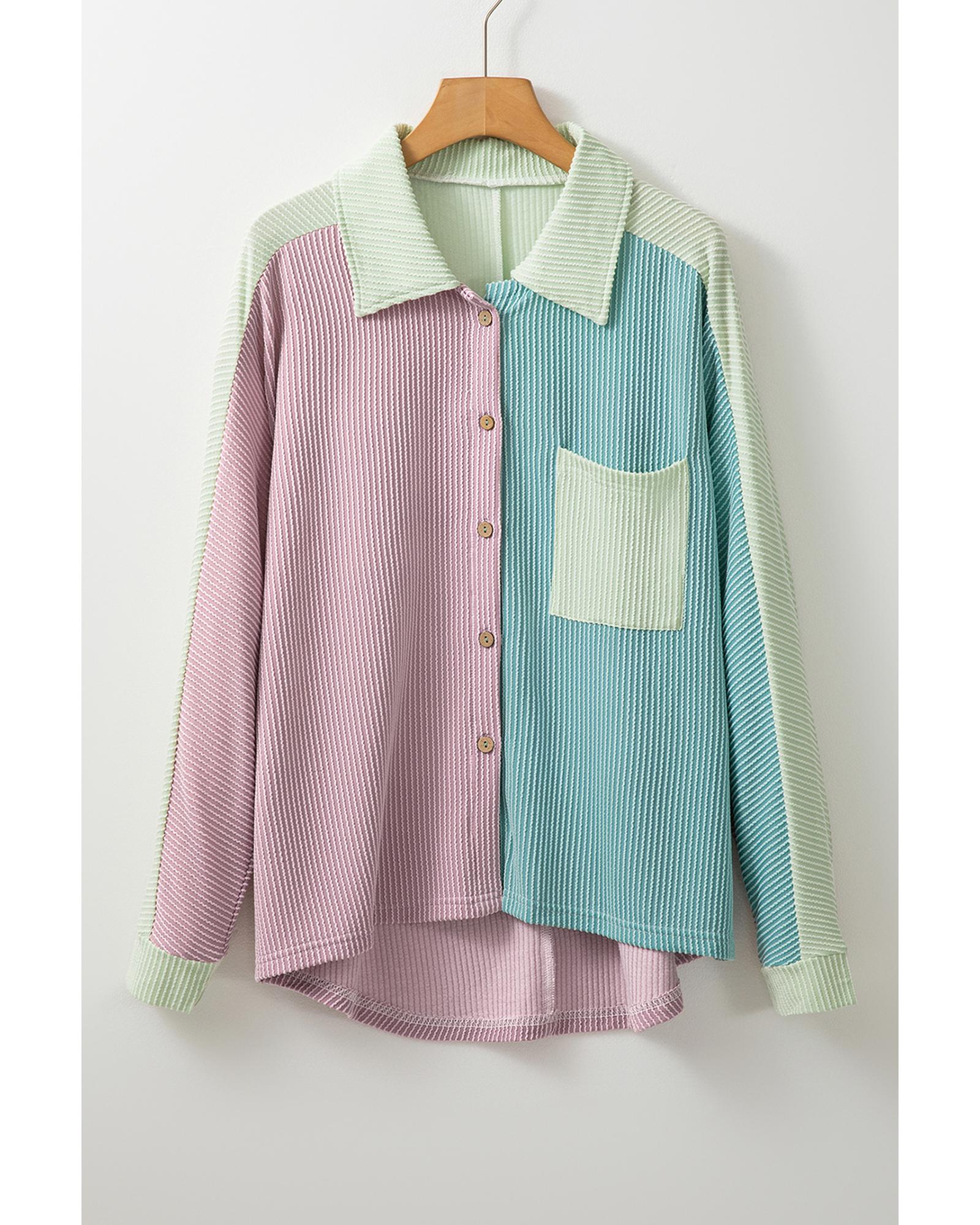 Phalaenopsis Color Block Corded Buttoned Oversized Shacket - S