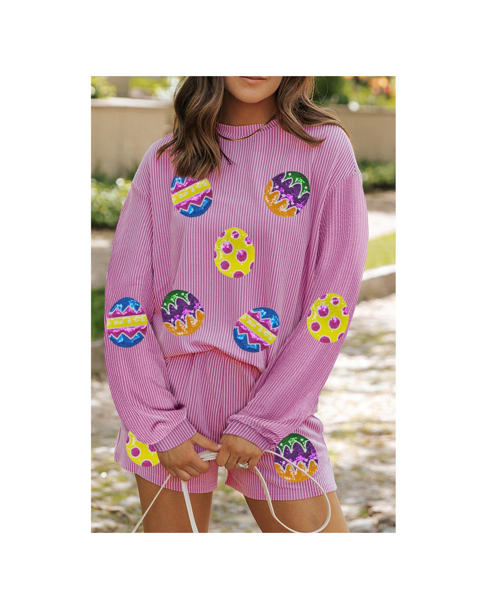 Phalaenopsis Easter Egg Patched Graphic Corded Long Sleeve Top Shorts Set – XL