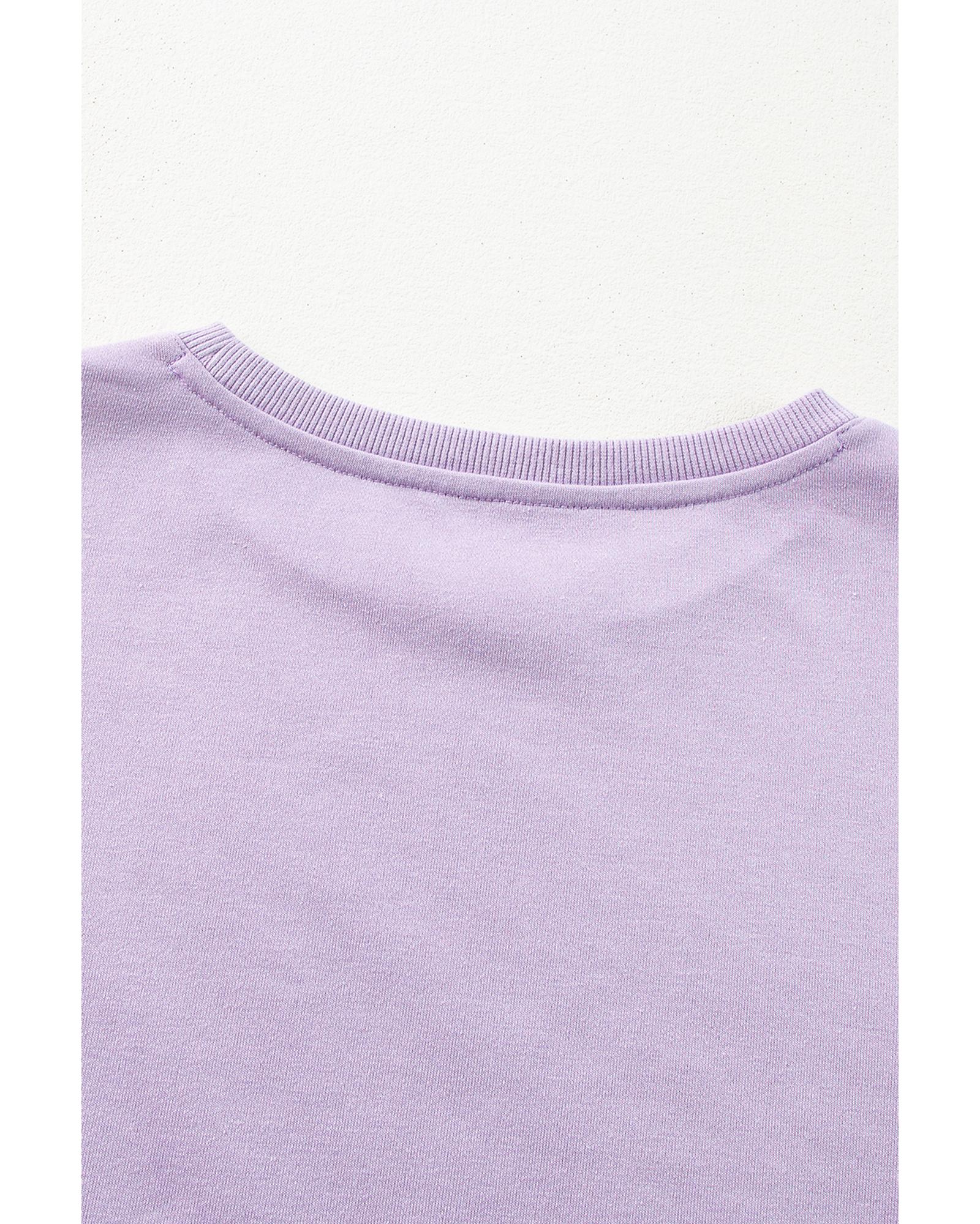 Peach Blossom Half Sleeve Raw Seam High Low Side Split Top - S