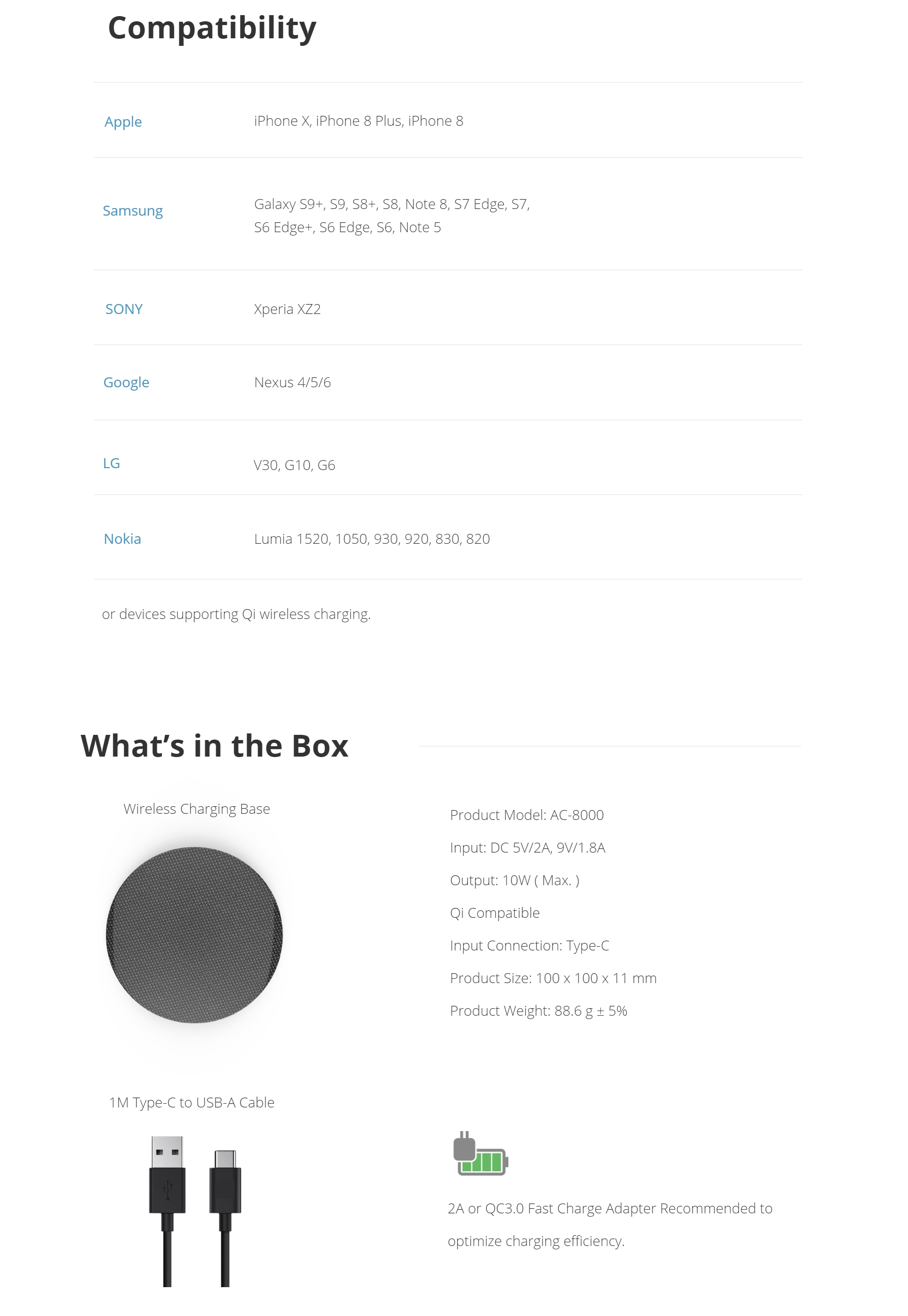 Designed to Fast Charge Qi compatible devices.