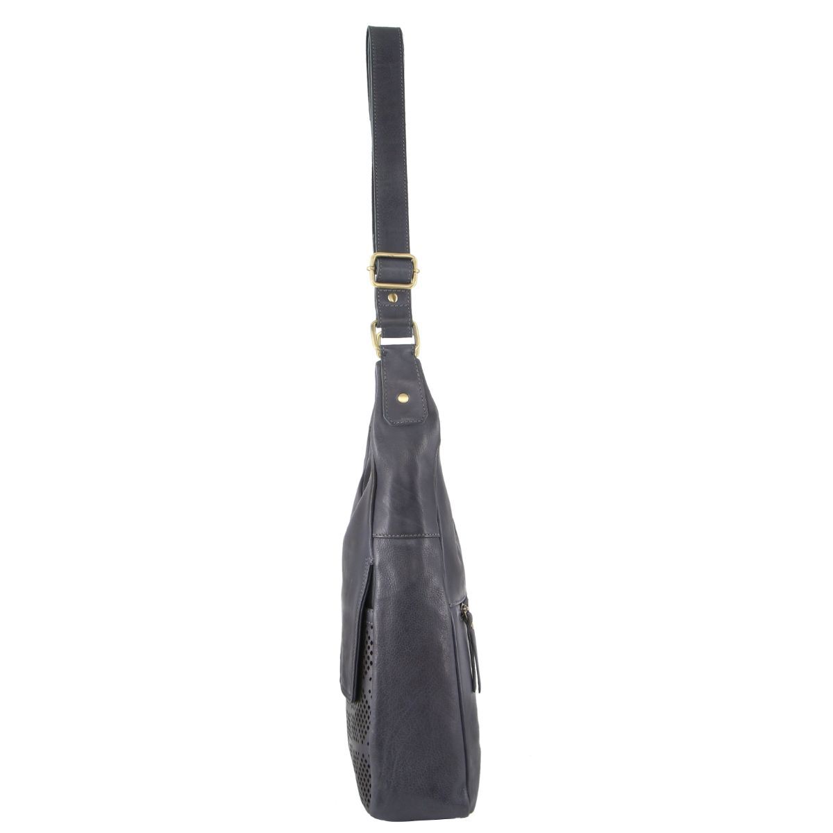 Pierre Cardin Womens Large Leather Multi Zip Perforated Cross-Body Bag – Teal