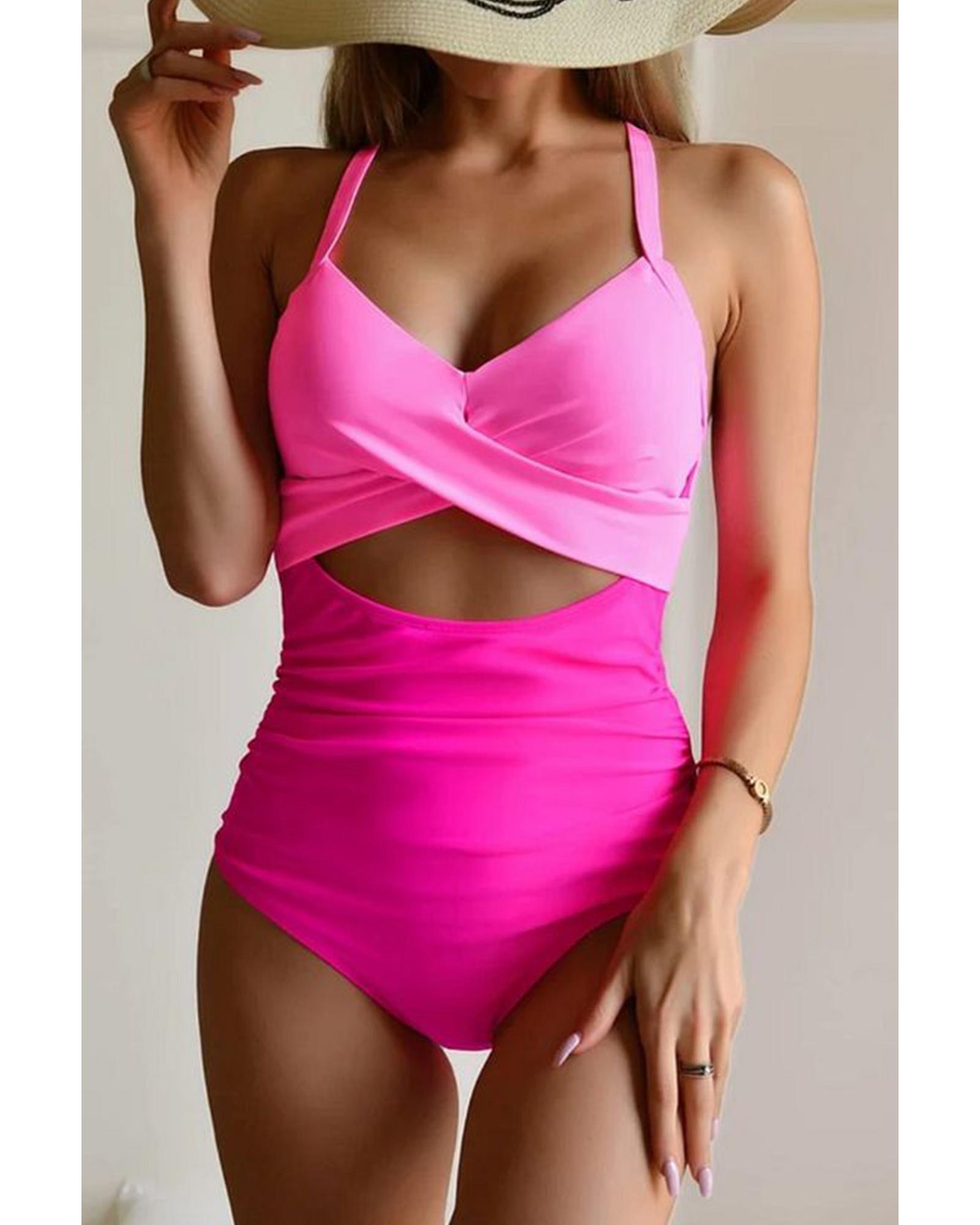 - tone Pink Crossed Cutout Backless Monokini