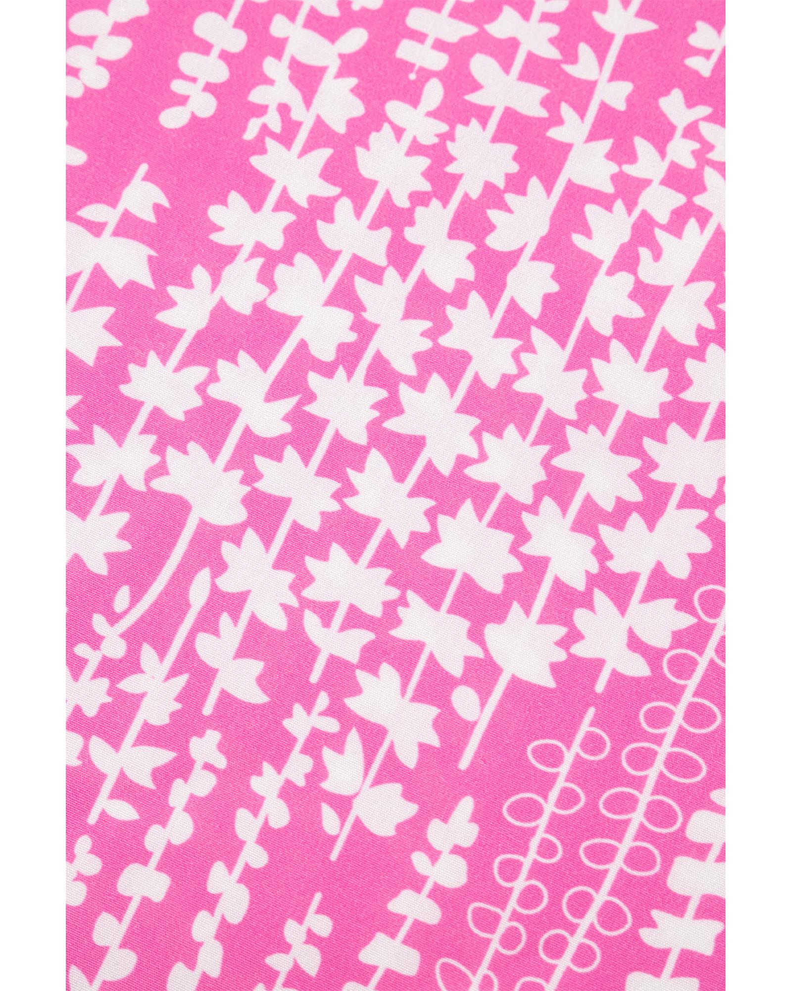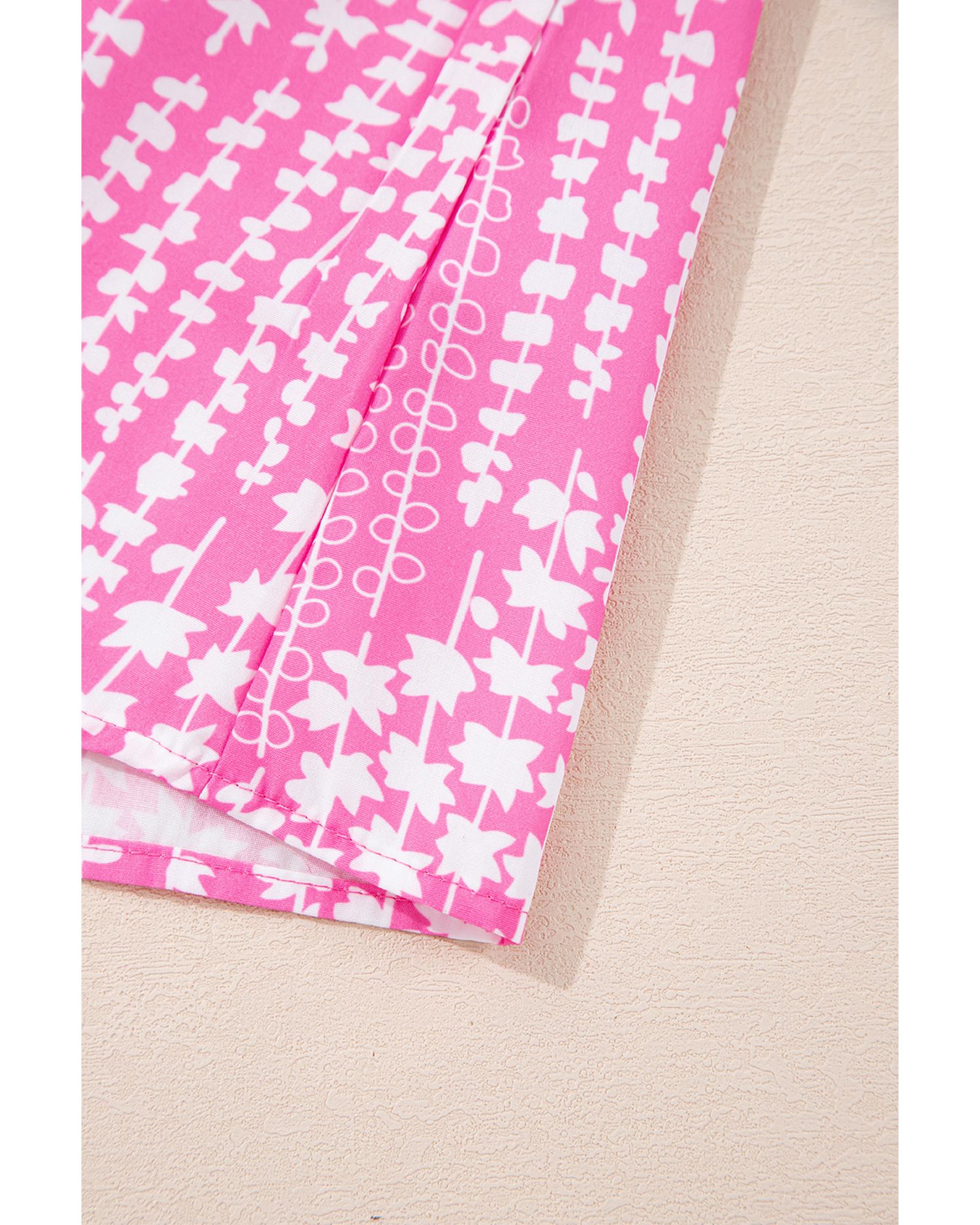 Pink Floral Print Contrast Ruffle Trim Short Sleeve Blouse - S