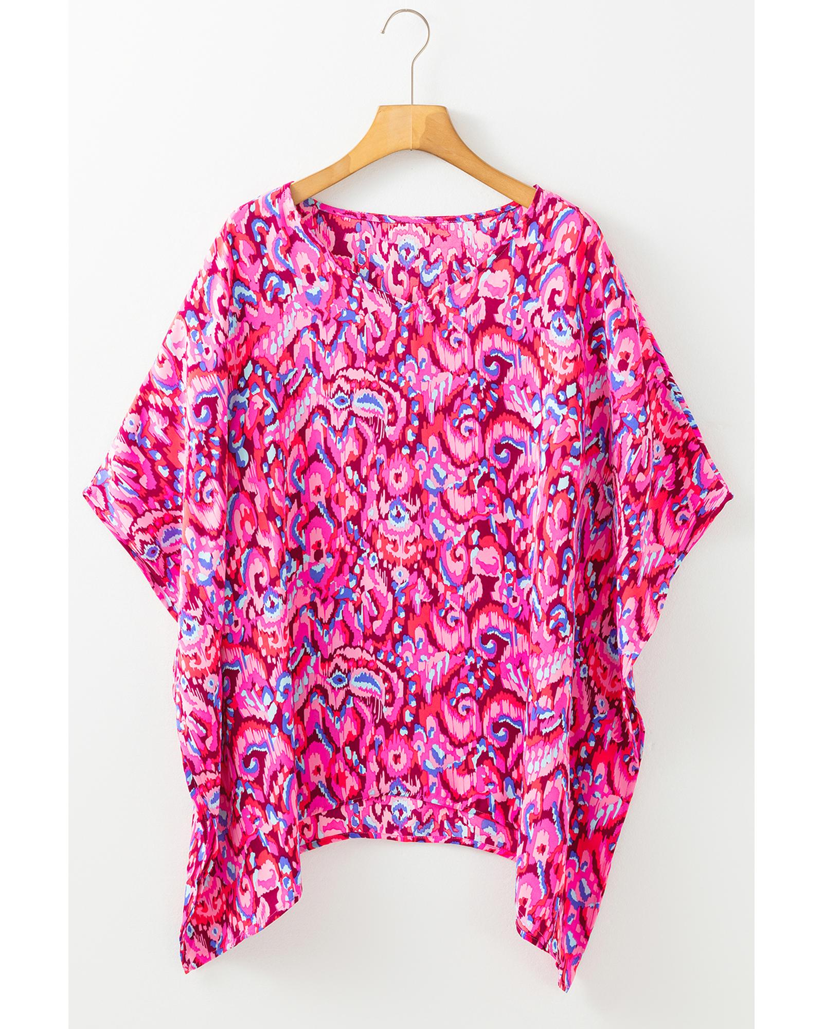 - Pink abstract print tunic blouse