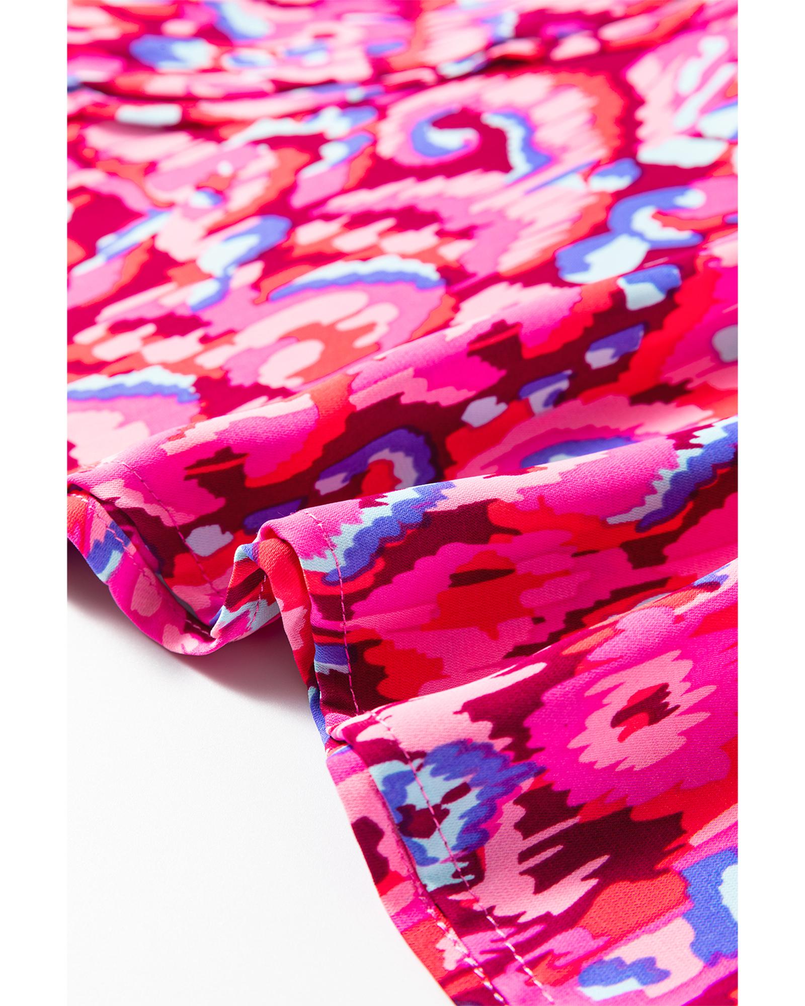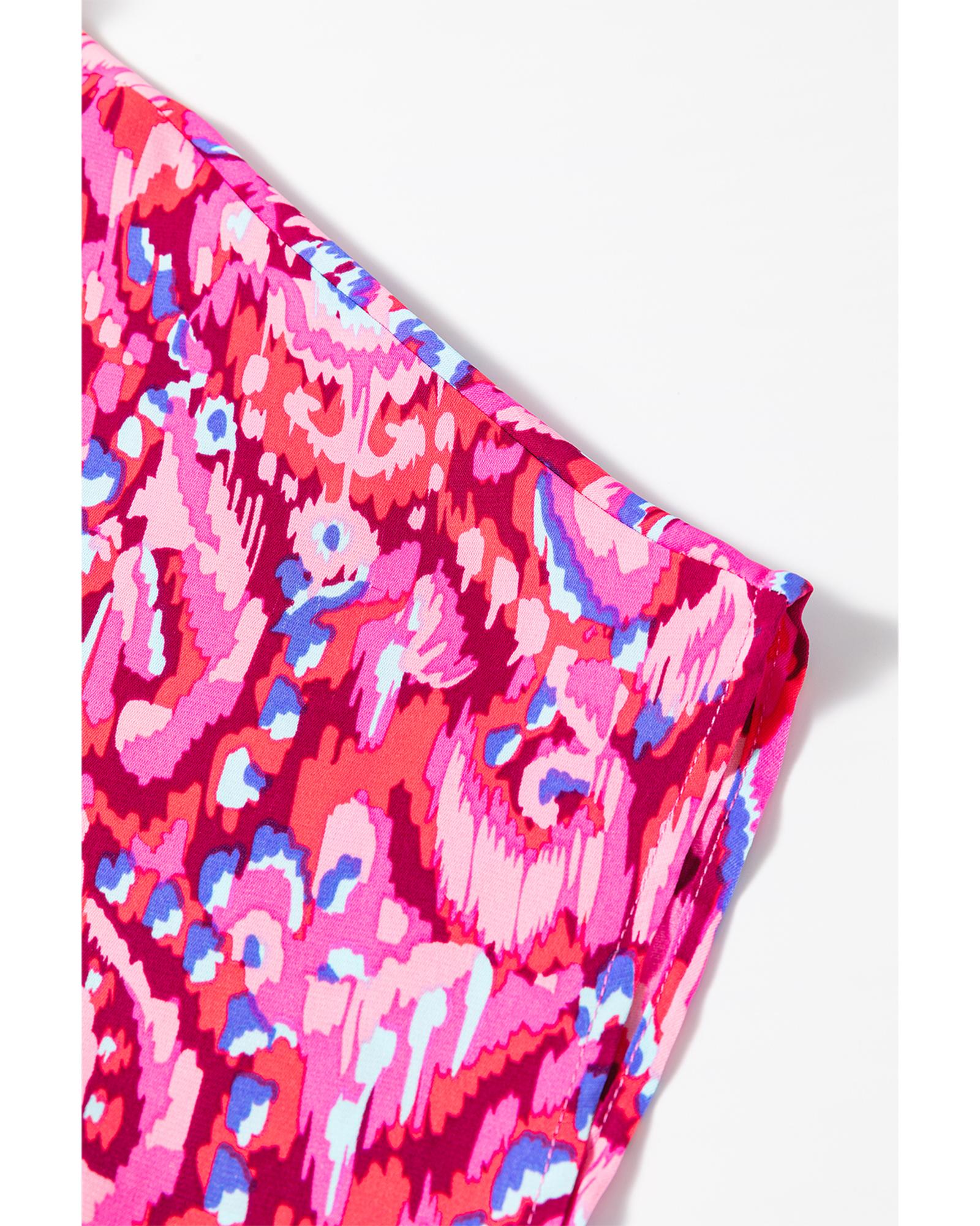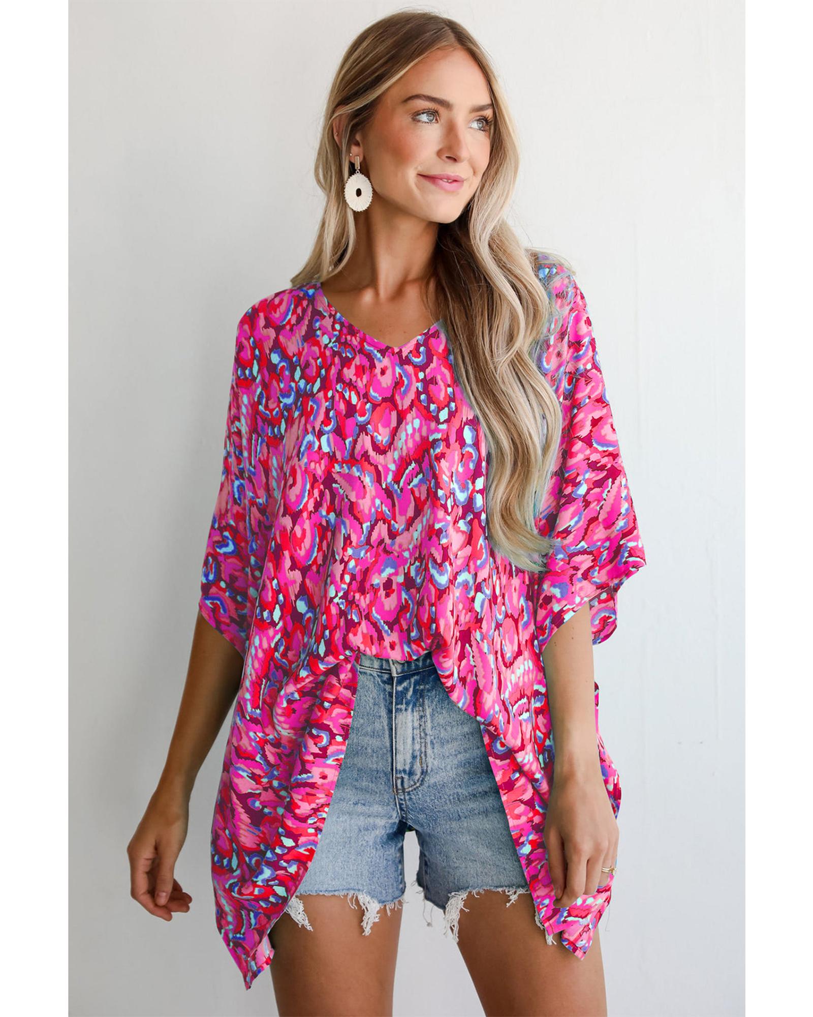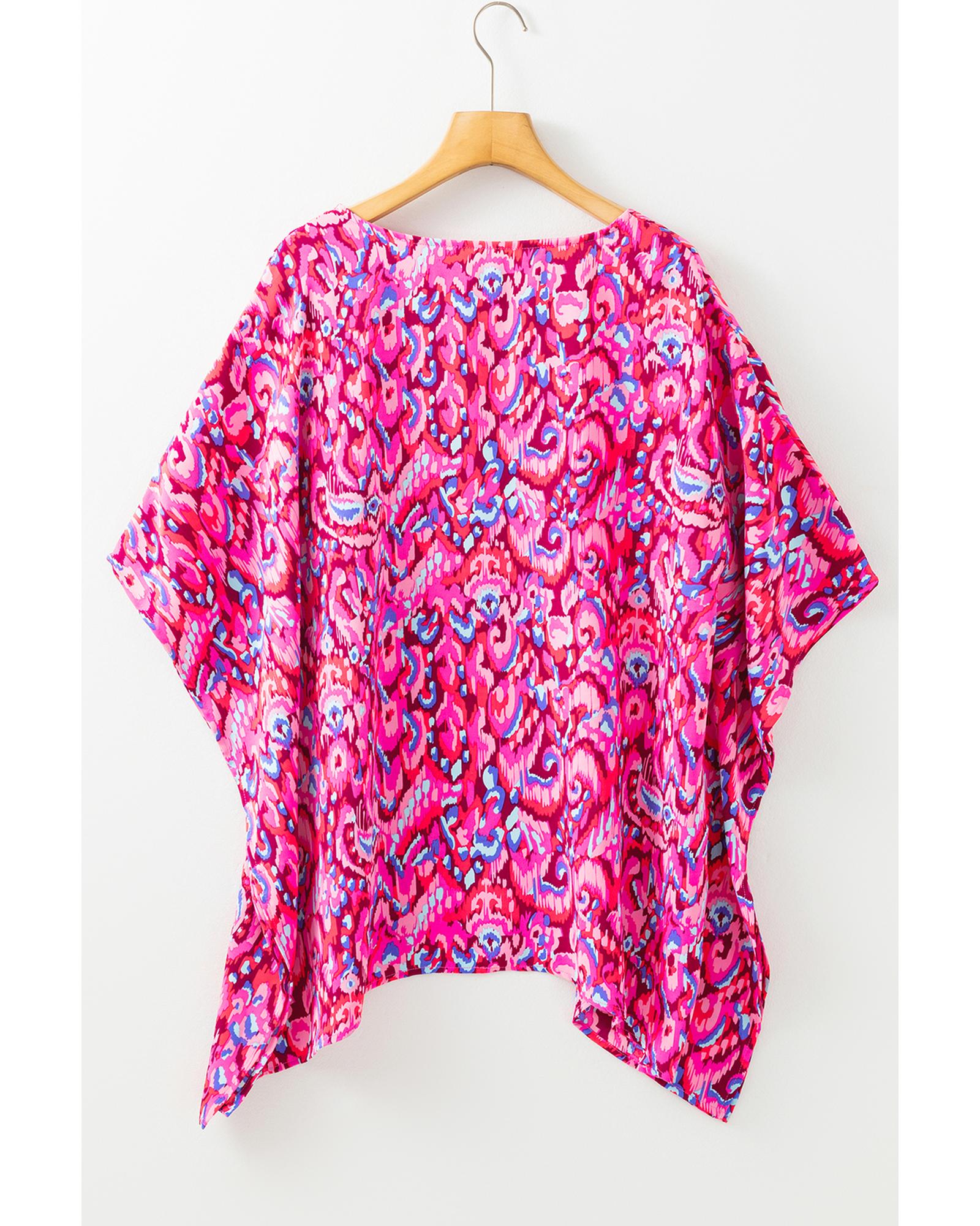 Pink Abstract Print V Neck Half Sleeve Loose Fit Tunic Blouse – S