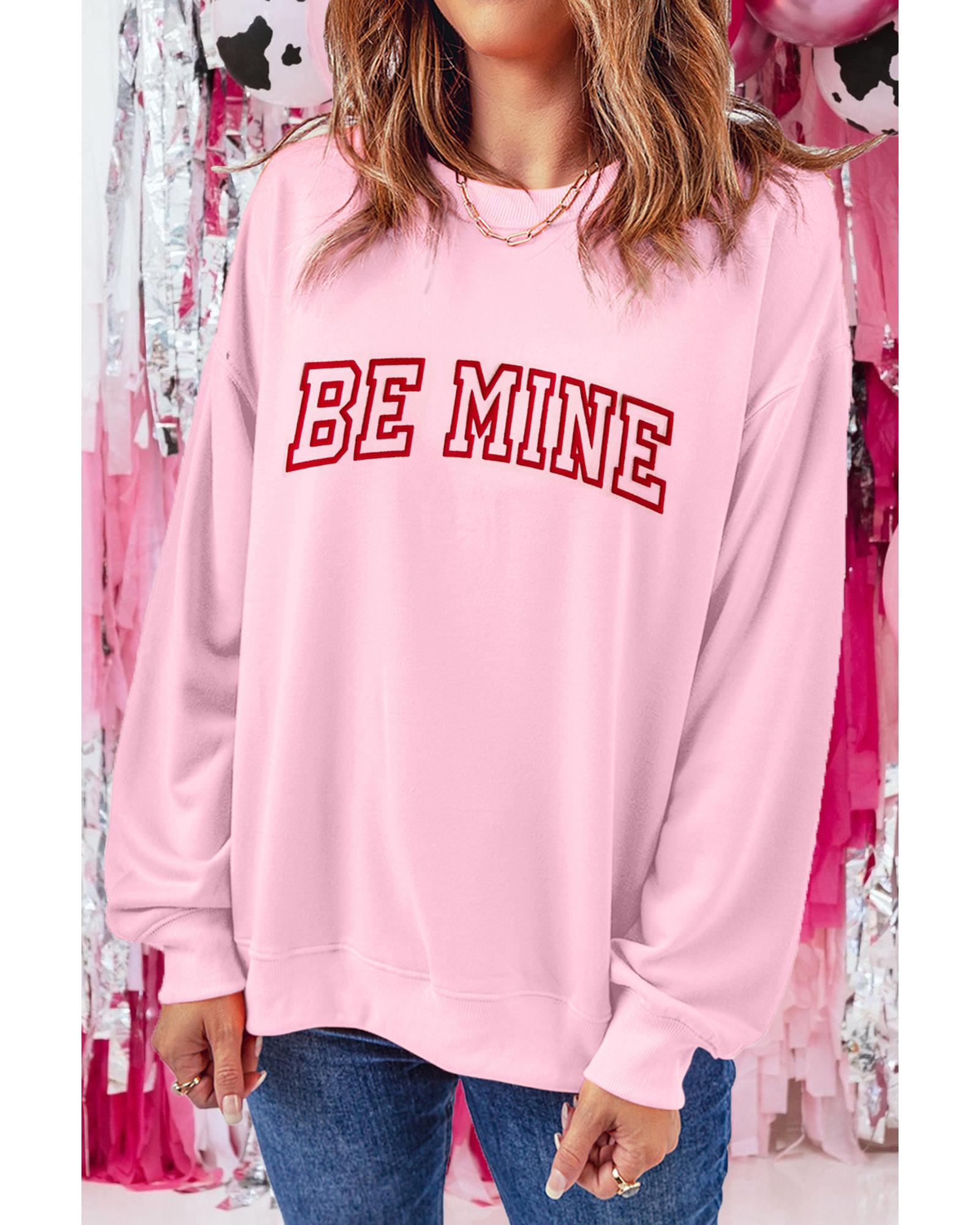 - Pink BE MINE Puff Graphic Pullover Sweatshirt