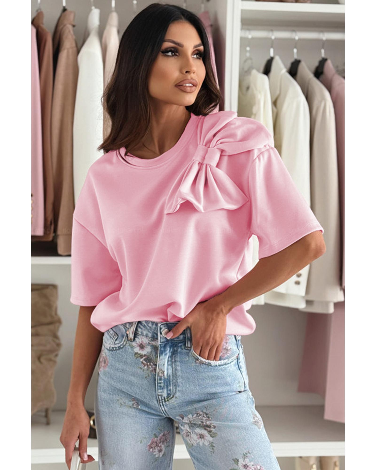 Pink Bow Applique Half Sleeve T-shirt – XL