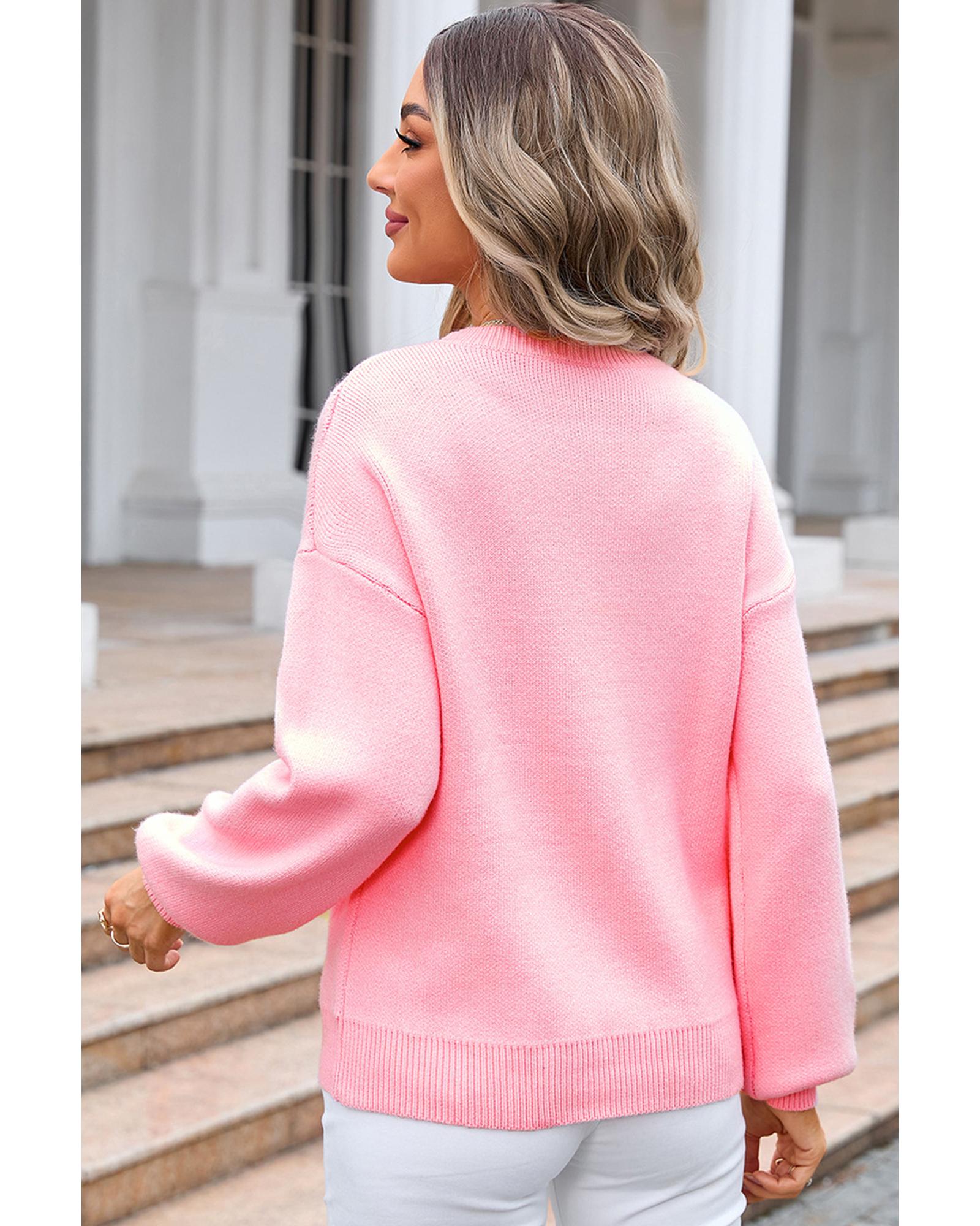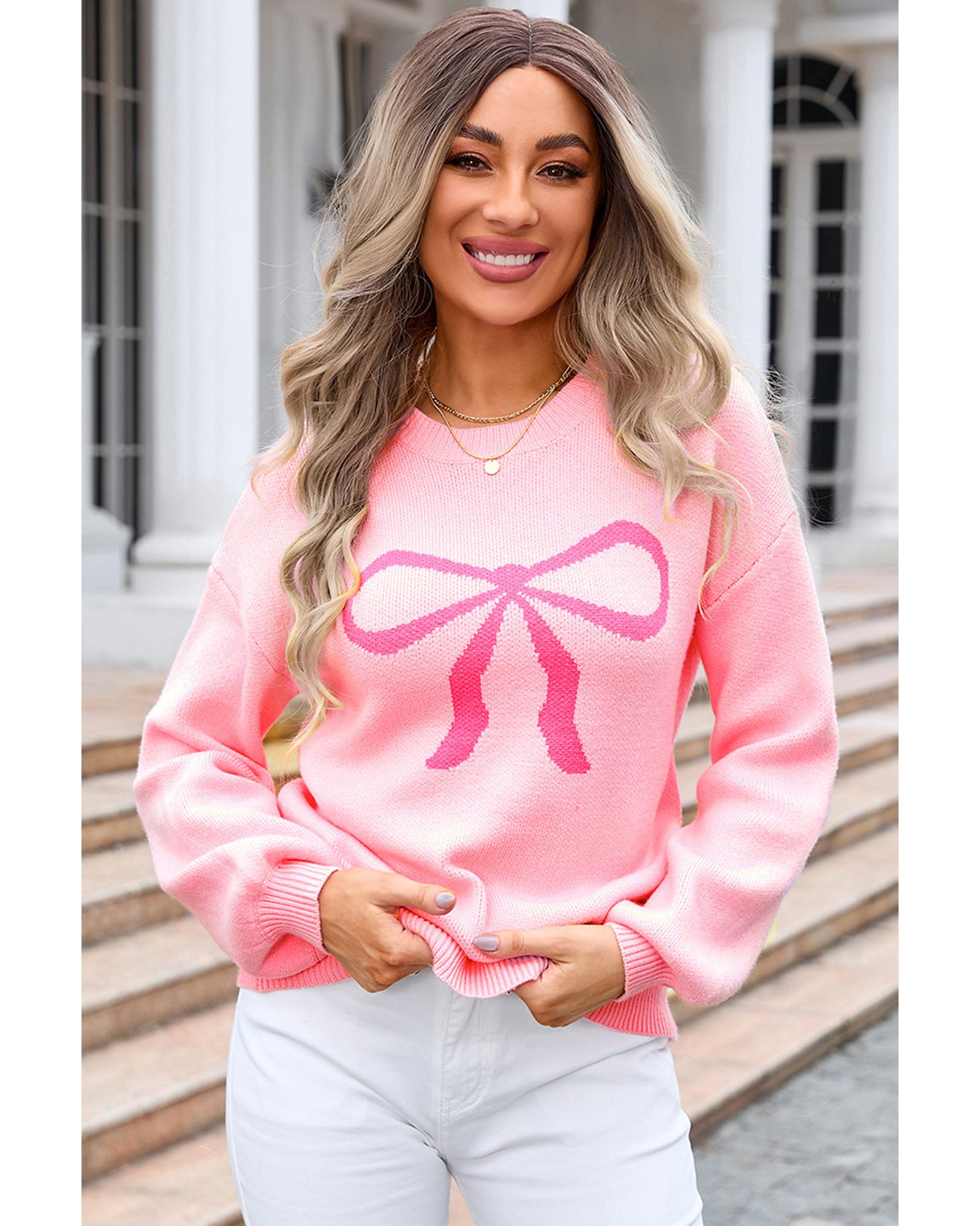 Pink Bow Graphic Drop Shoulder Round Neck Sweater - M Original price was: $77.99.Current price is: $42.99.