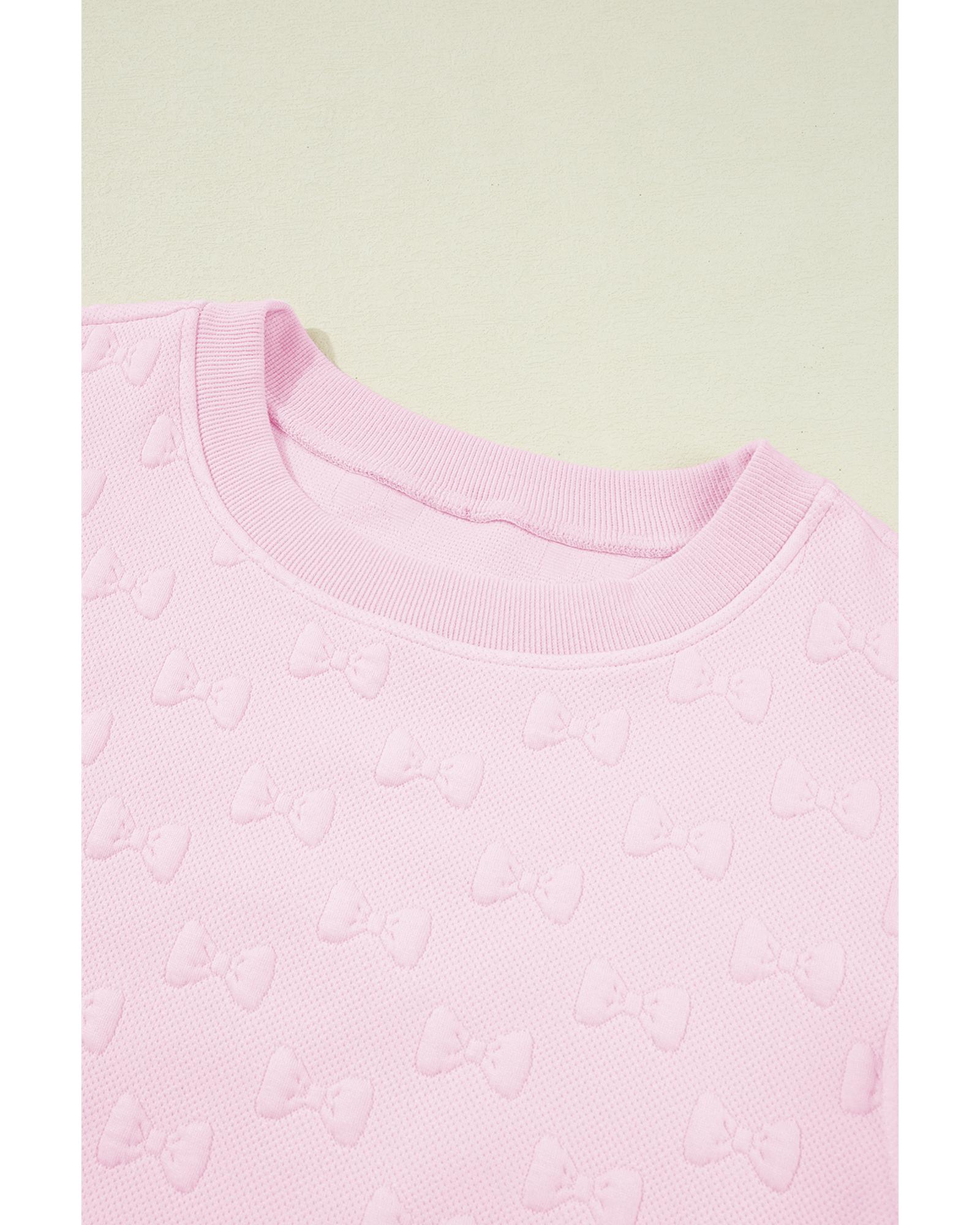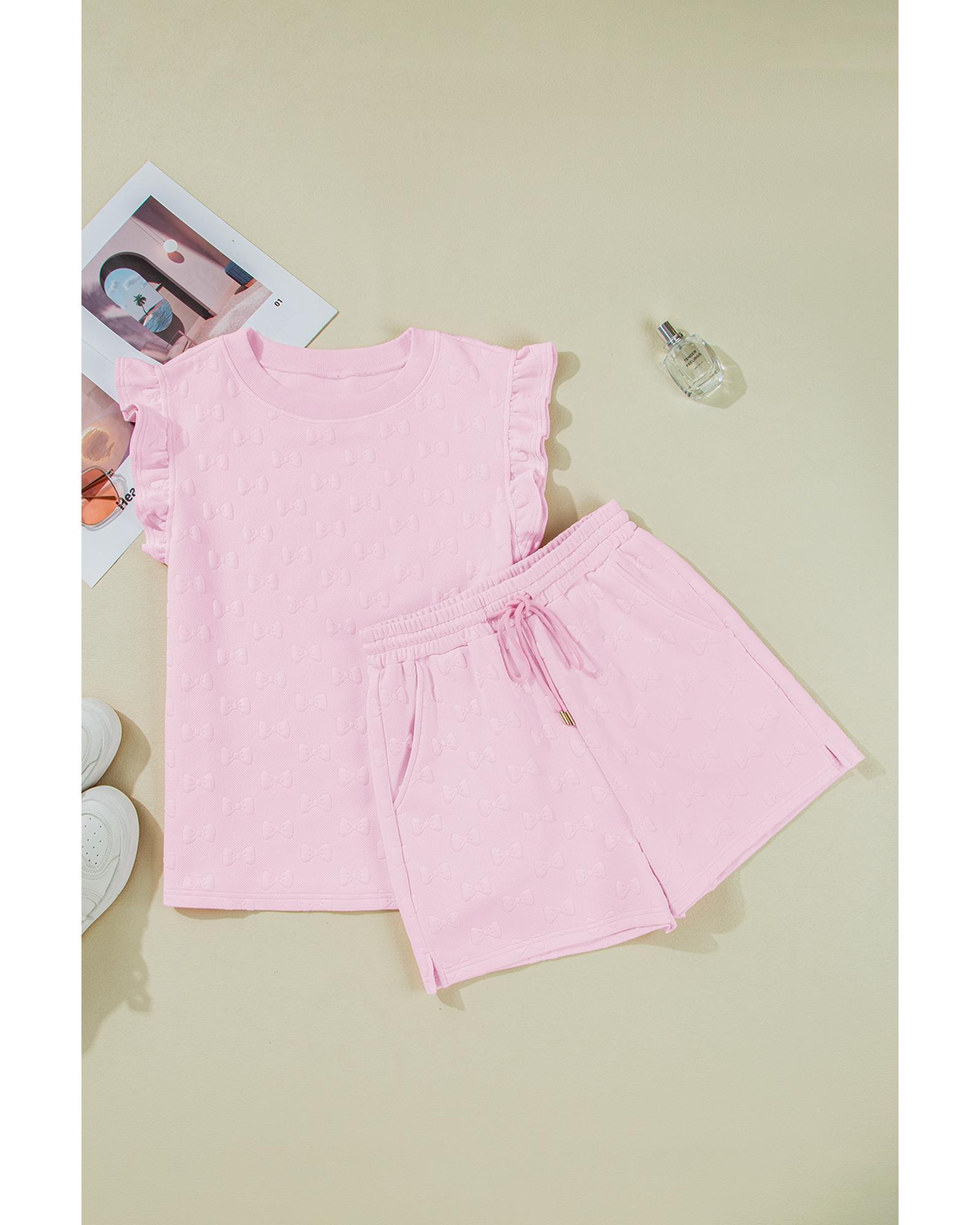 Pink Bow Jacquard Ruffle Sleeve Short 2pcs Outfit – S