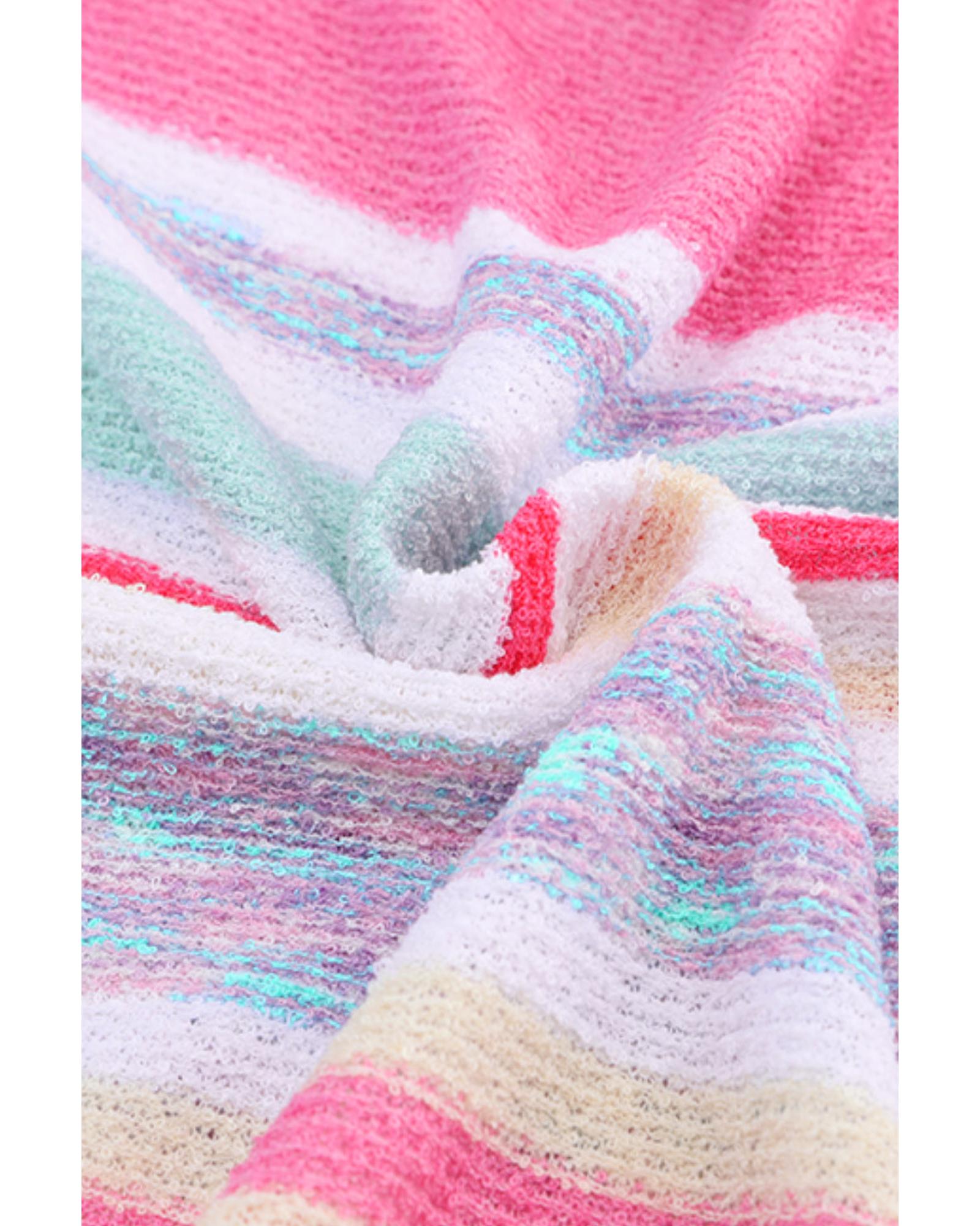 Pink Color Block Striped Three-Quarter Sleeve Knitted Top – S