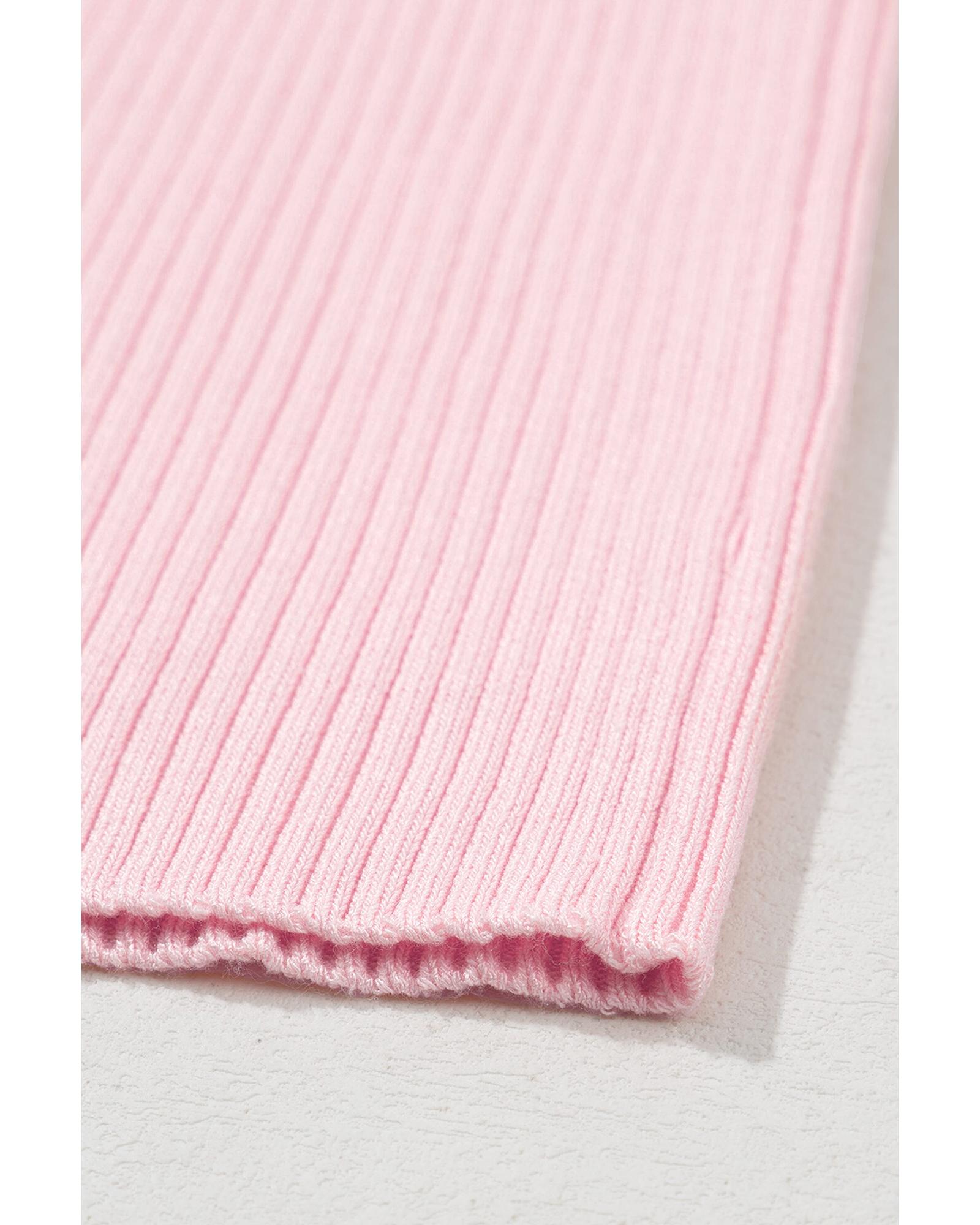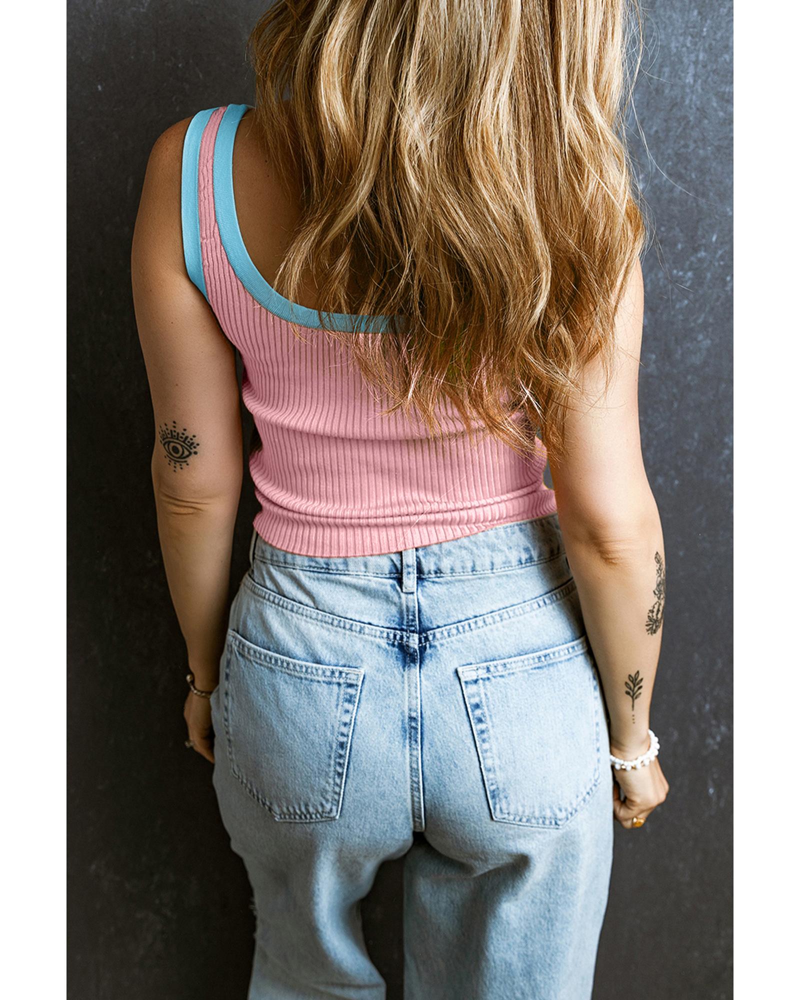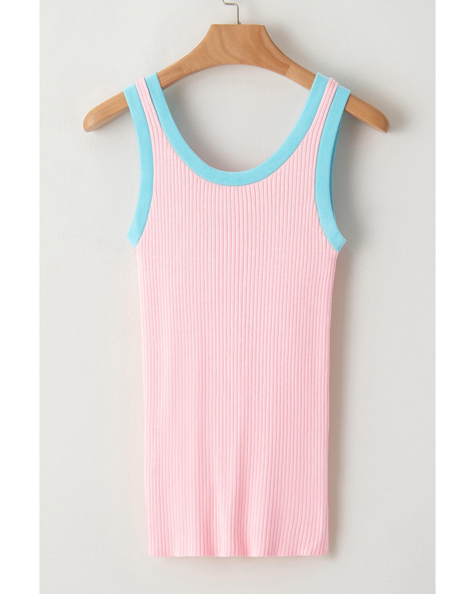 Pink Colorblock Edge Ribbed Knit U Neck Tank Top – L