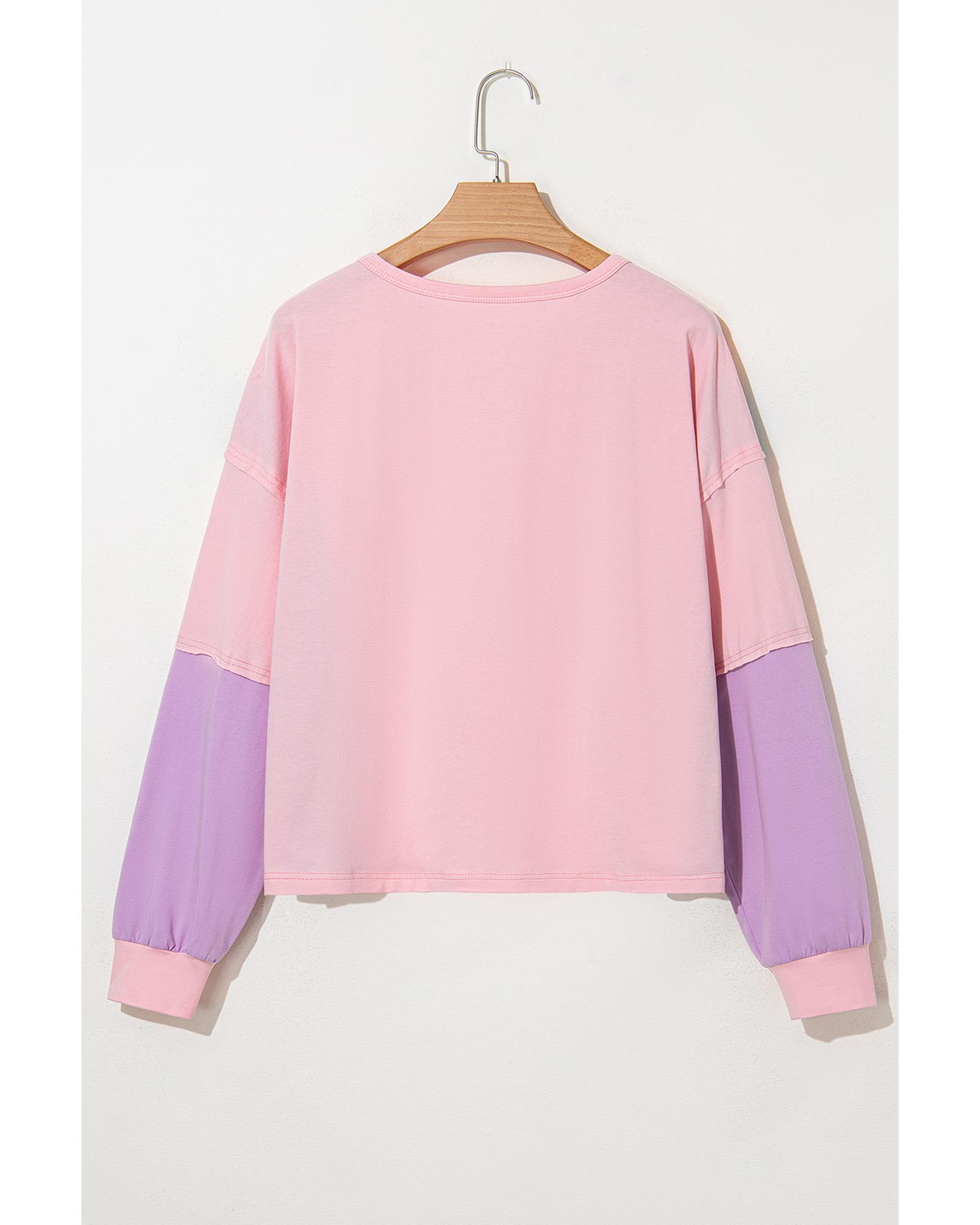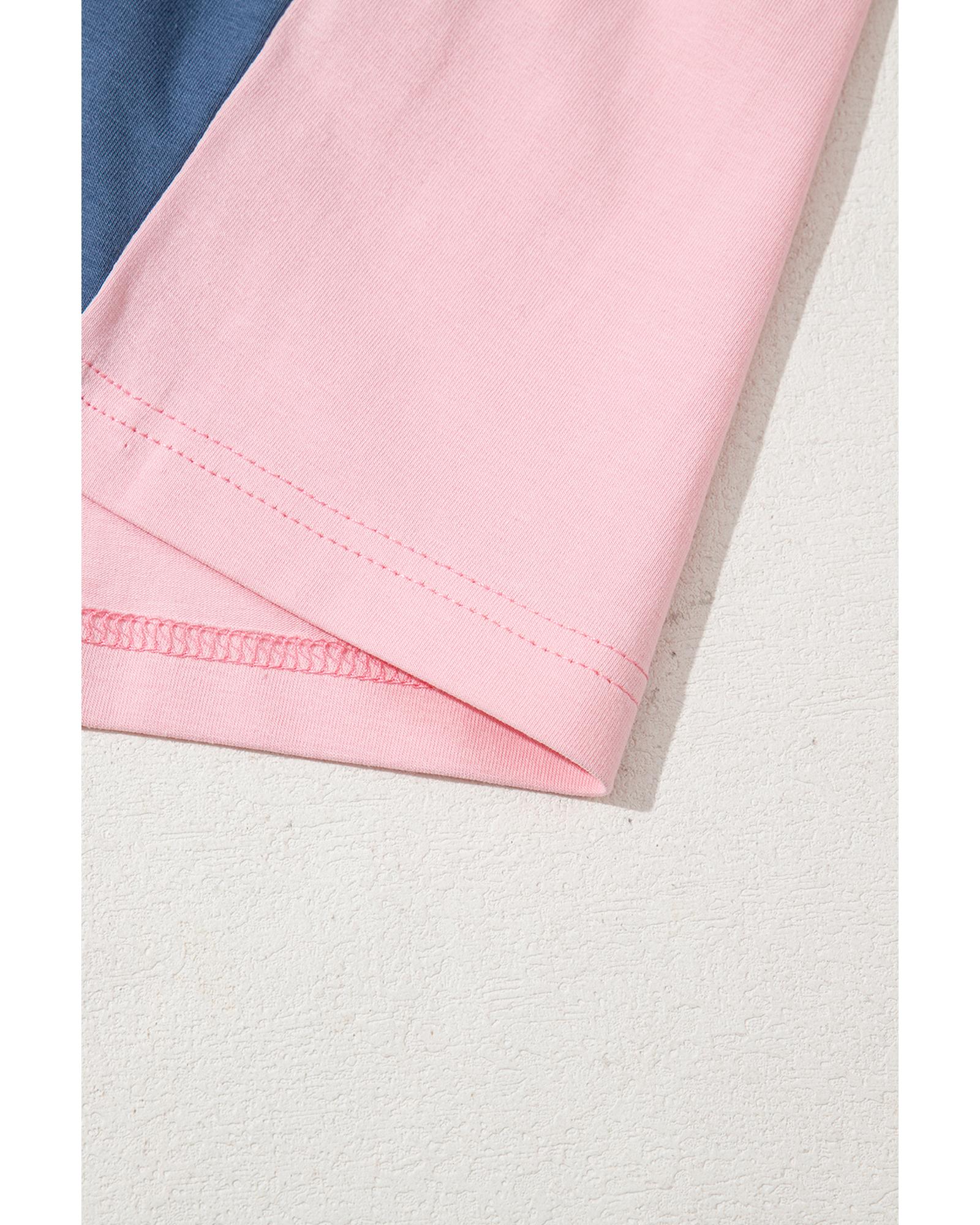 Pink Colorblock Long Sleeve Buttons Henley Top – L