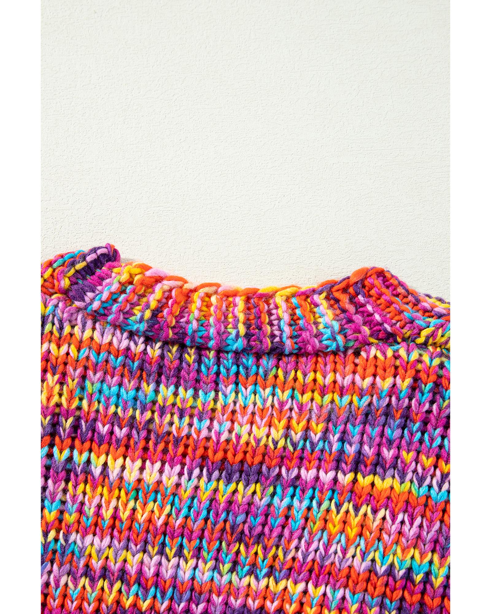 Pink Confetti Drop Shoulder Open Front Cardigan – L