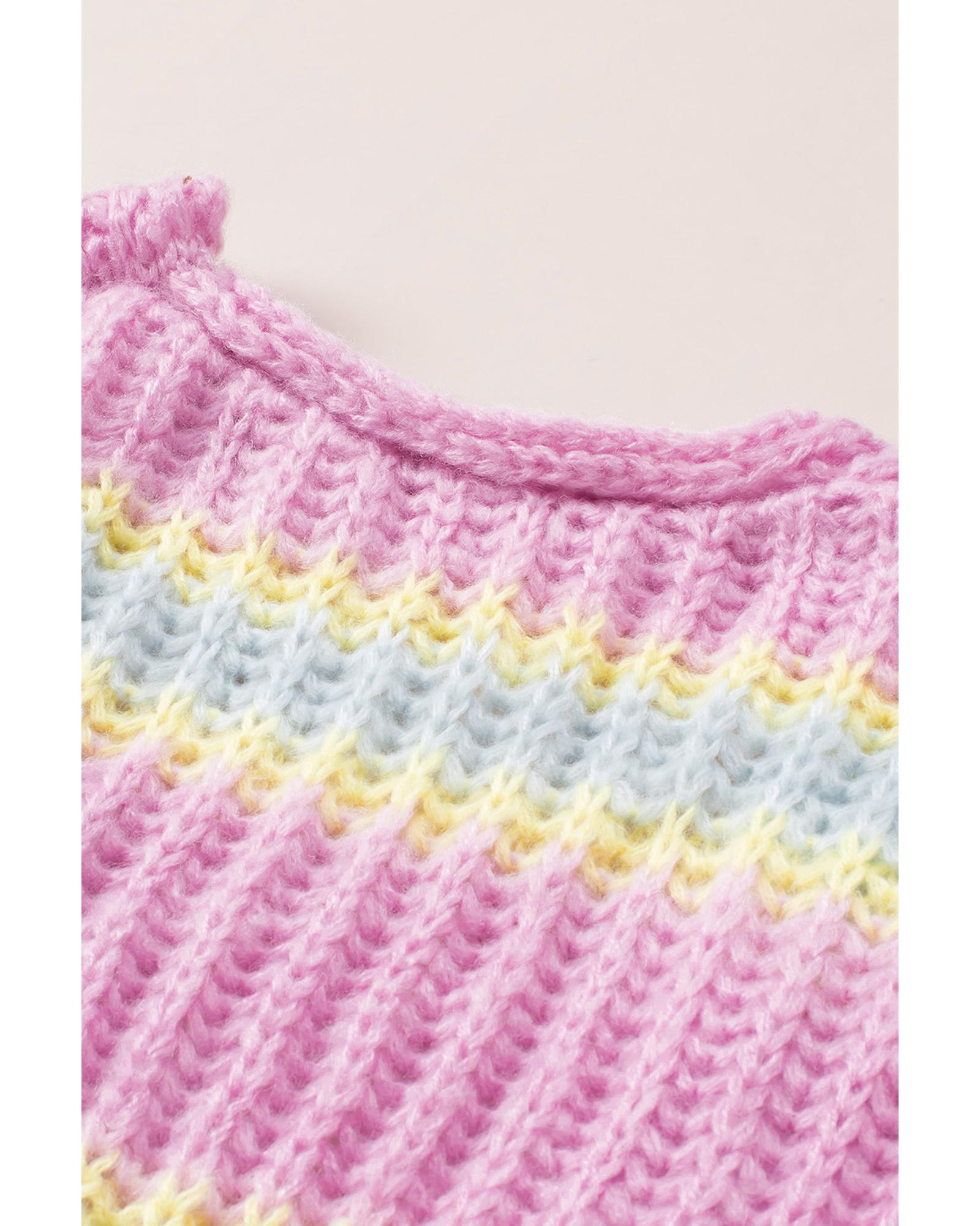 Pink Contrast Striped Open Front Cable Cardigan – S