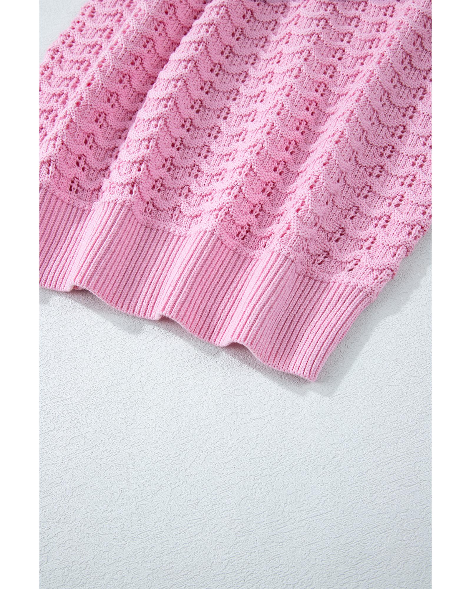 • Delicate and fashionable Pink Crochet Knit Drop Shoulder Sweater