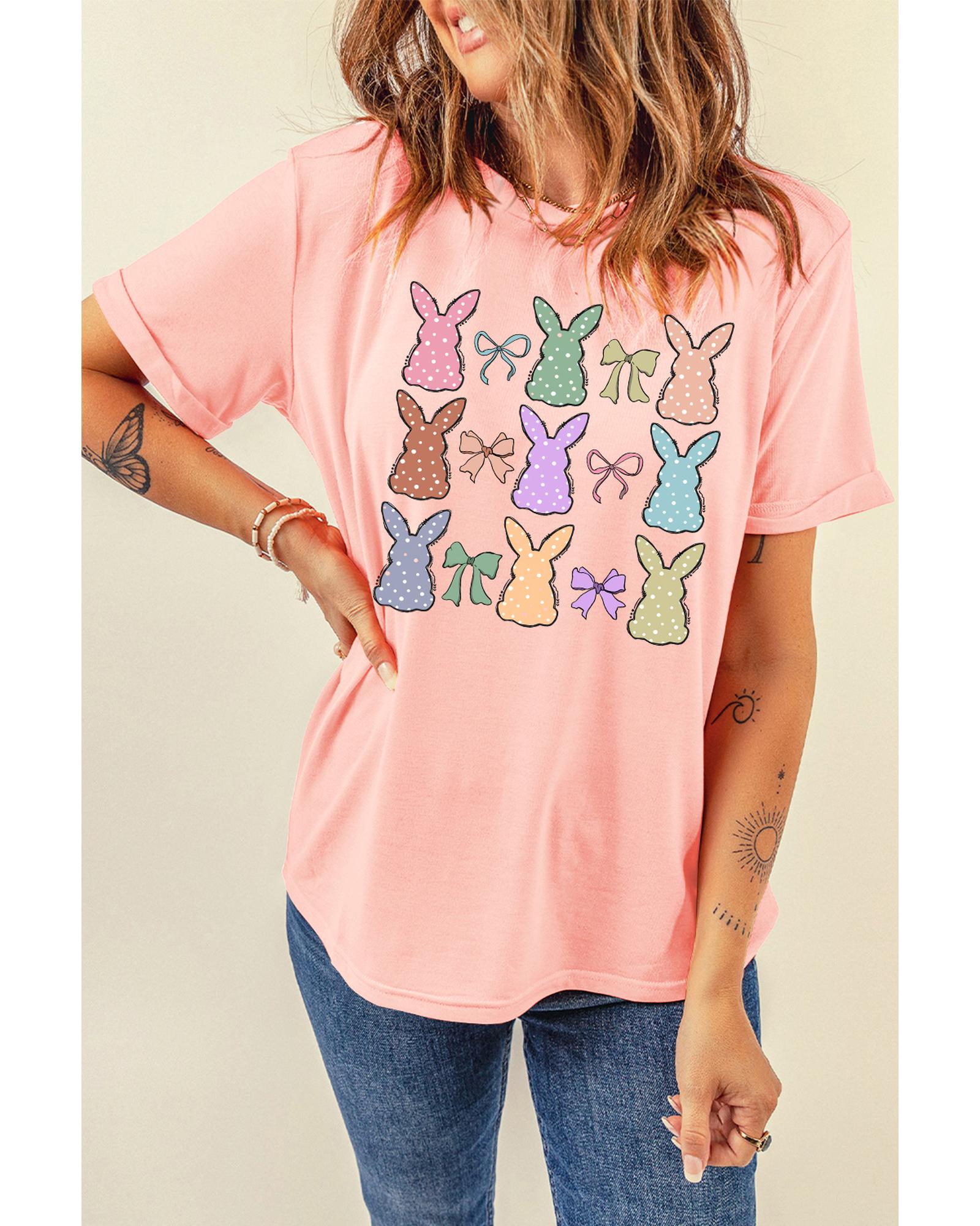 Pink Dotty Bunny Bow Printed Easter Day Fashion T Shirt – L