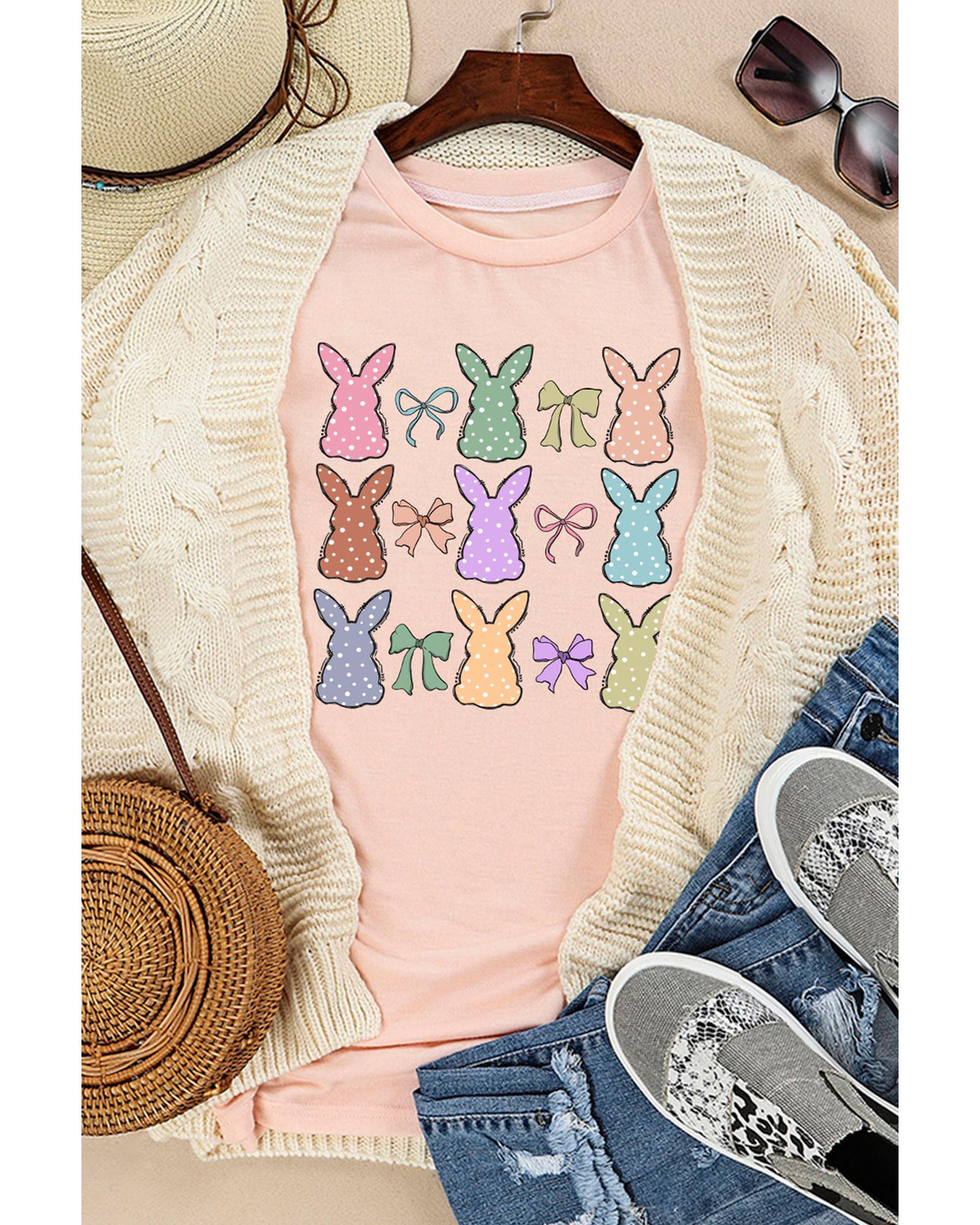 Pink Dotty Bunny Bow Printed Easter Day Fashion T Shirt – XL