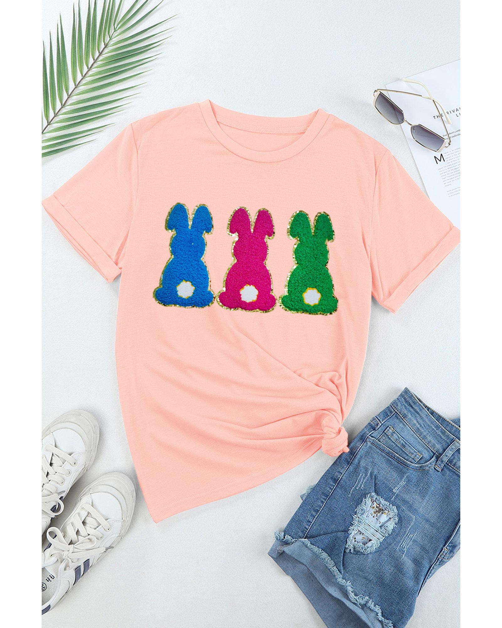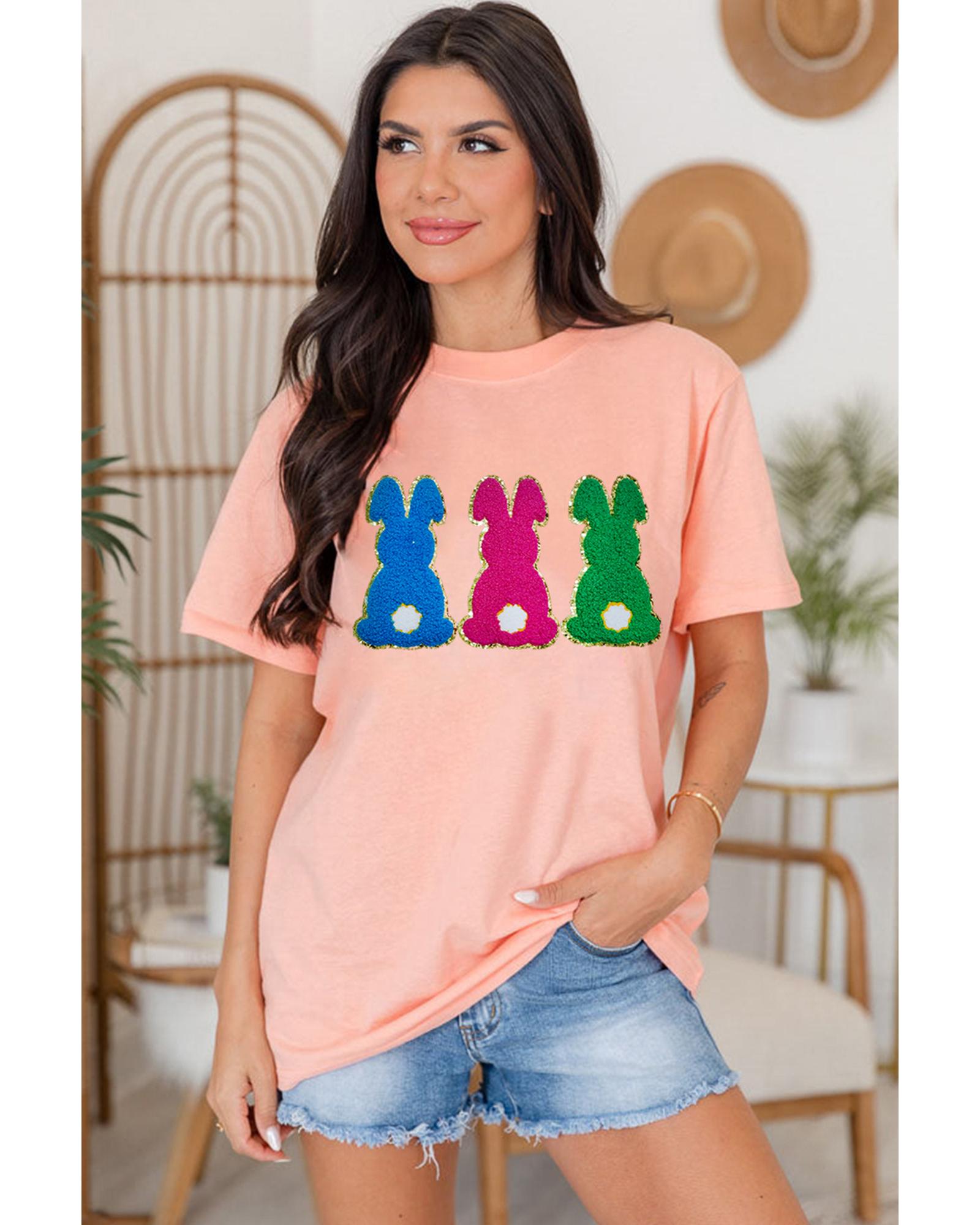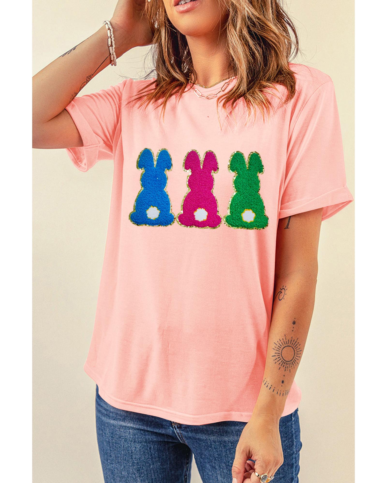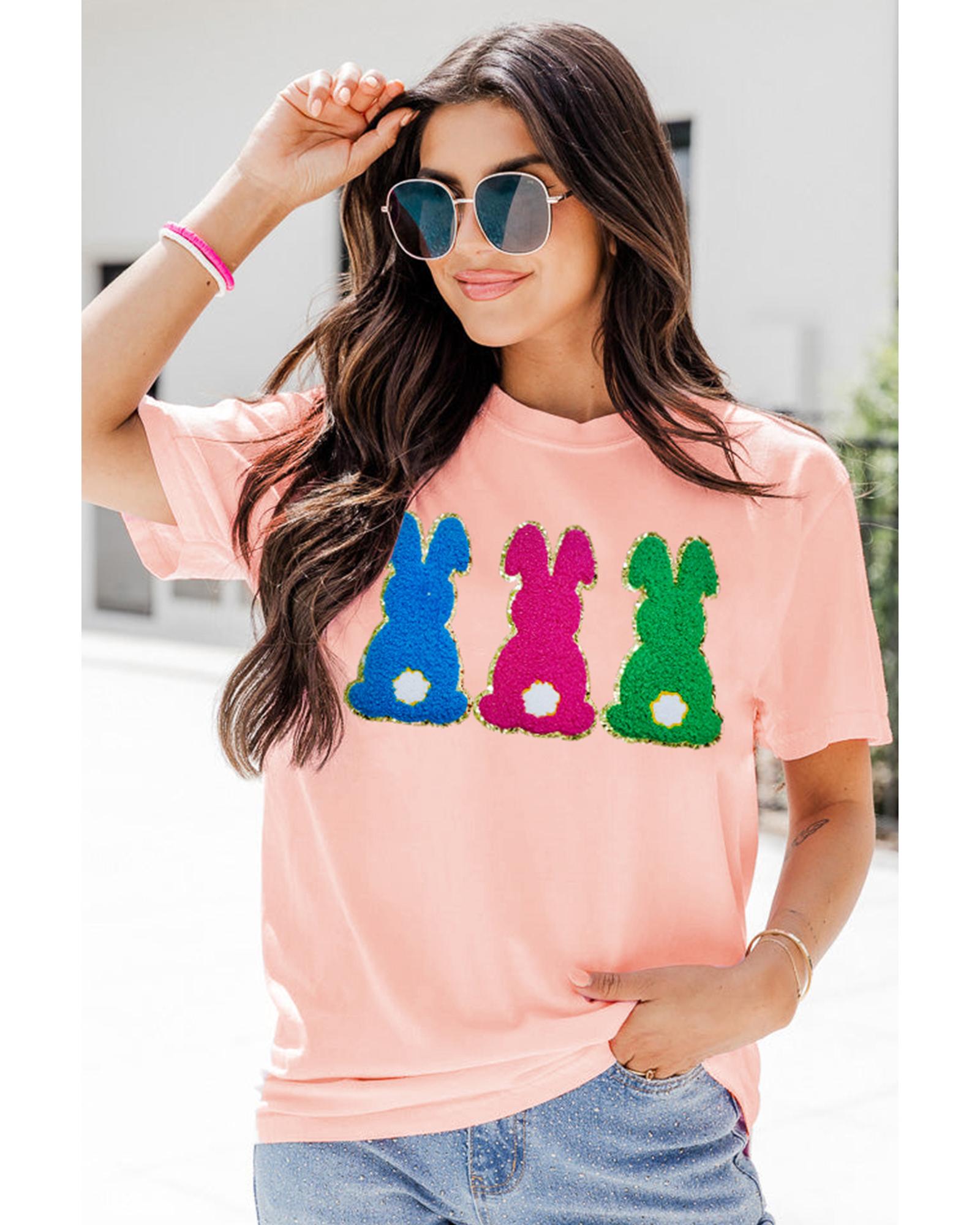 Pink Easter Bunny Chenille Patched Graphic Tee – XL