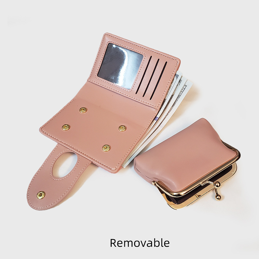 - Organized Interior: Despite its compact size, this wallet is surprisingly spacious. It includes 3 dedicated card slots, a clear ID window for easy access, a full-length cash slot for banknotes, and the separate kisslock purse for coins and small items.