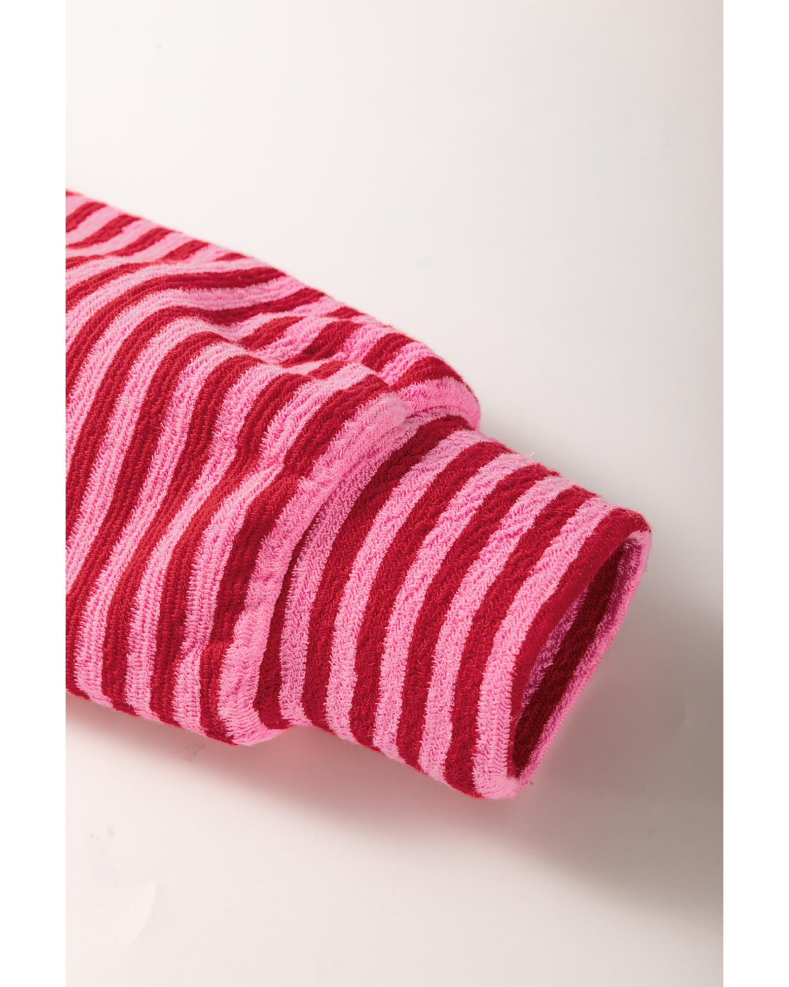 - Pink floral patch color block striped sleeve textured top