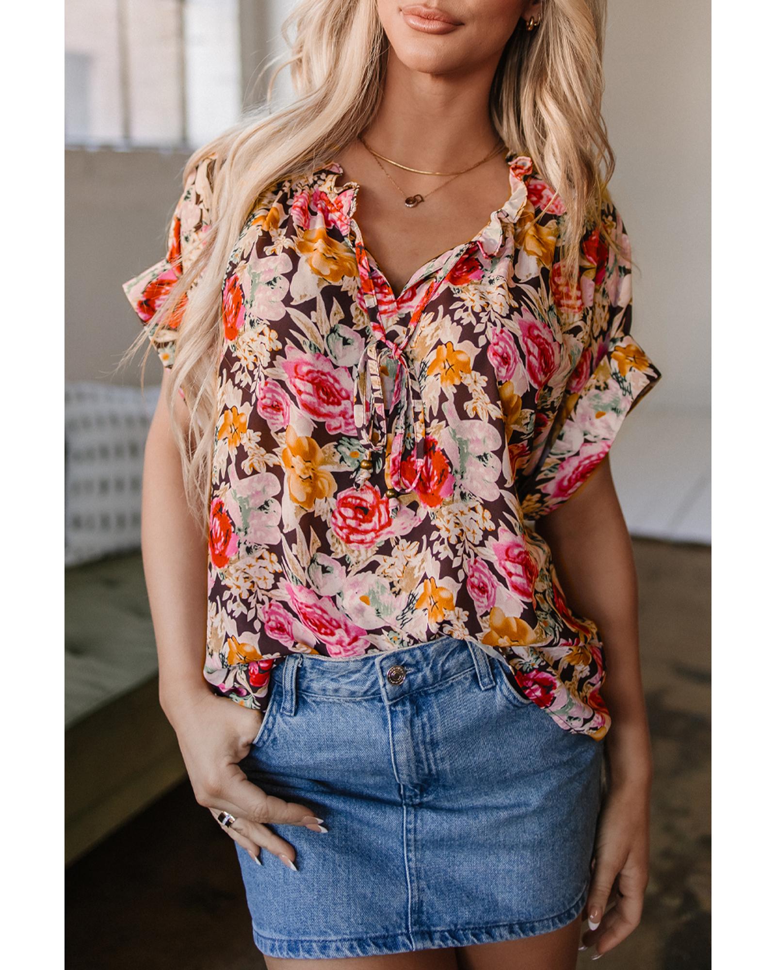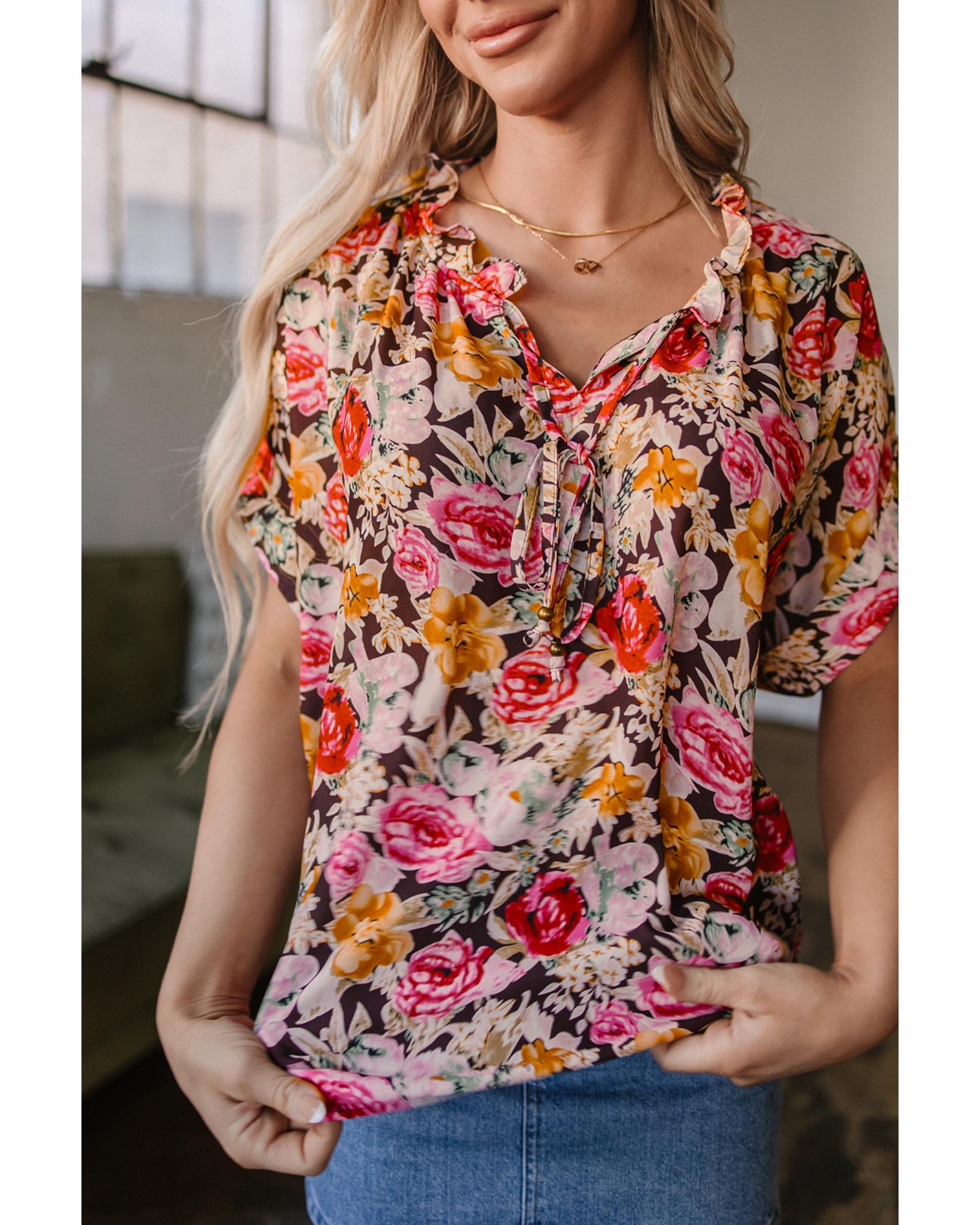 Pink Floral Print Crew Neck Short Sleeve Shift Blouse – S