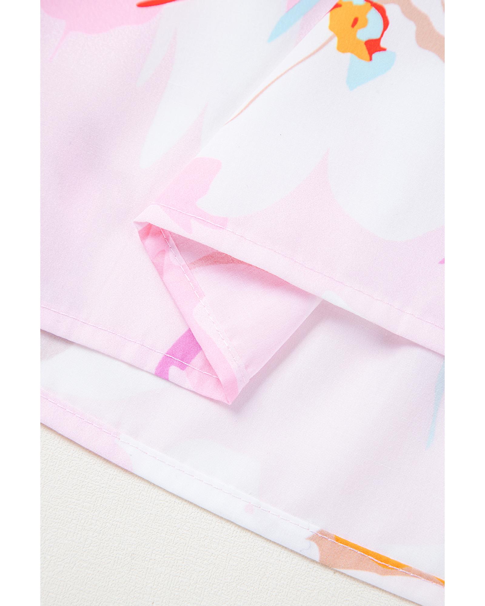 Pink Floral Print Bubble Sleeve Neck Tie Ruffled Dress - XL