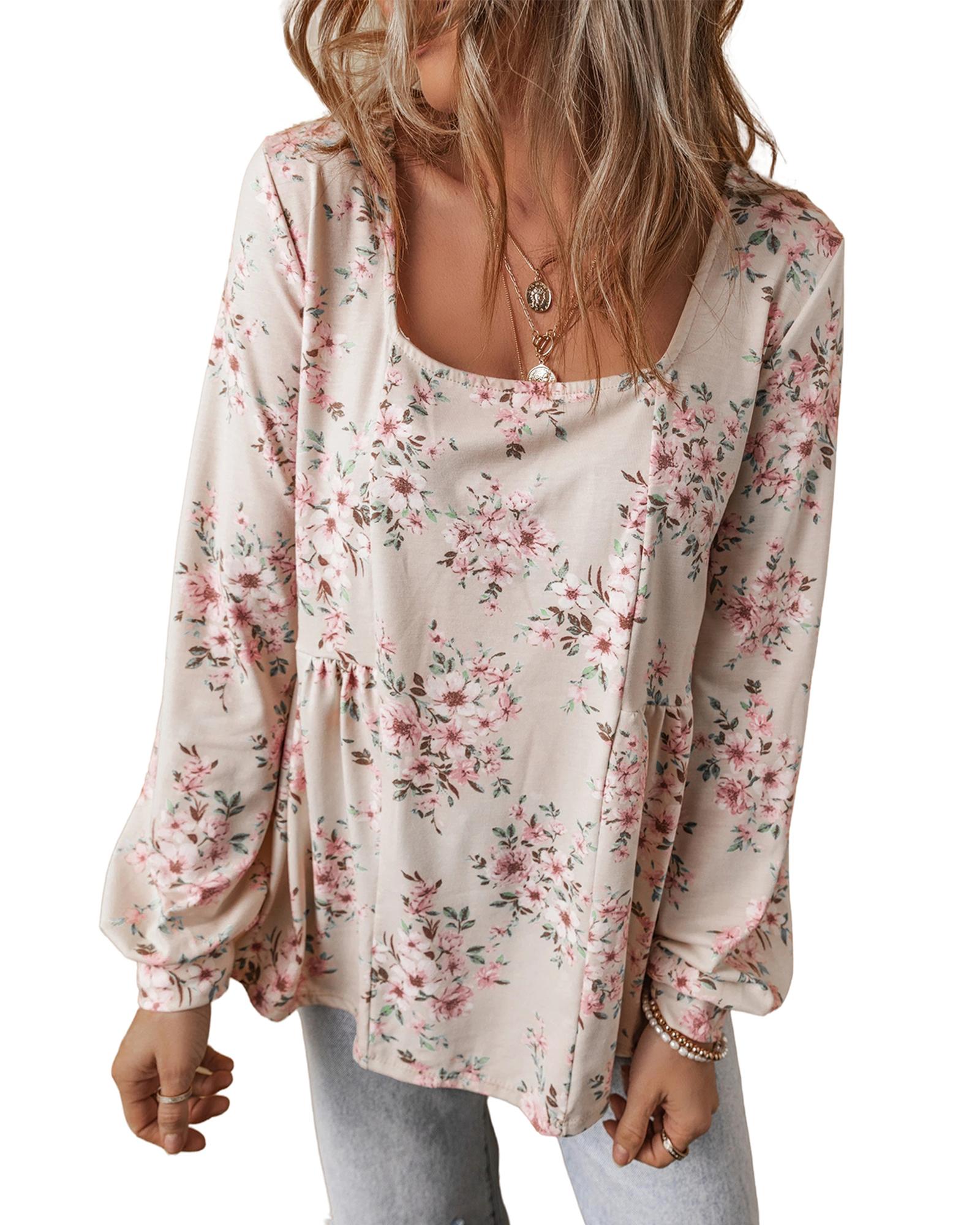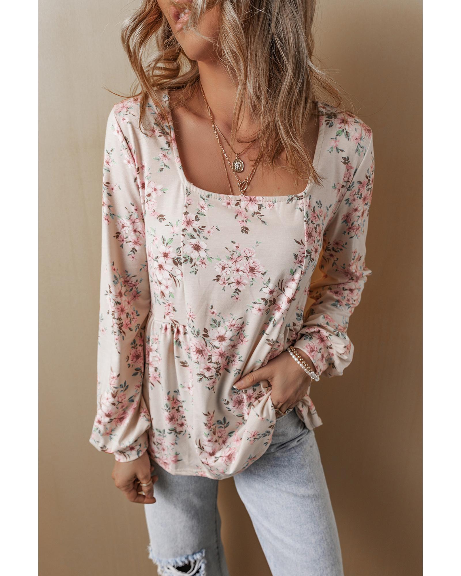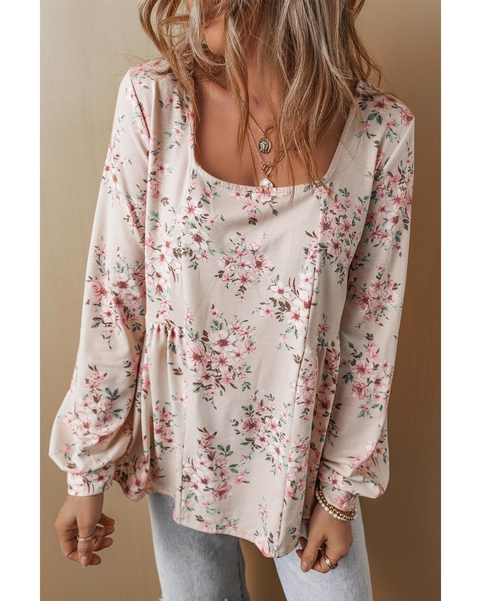 - Pink floral print blouse