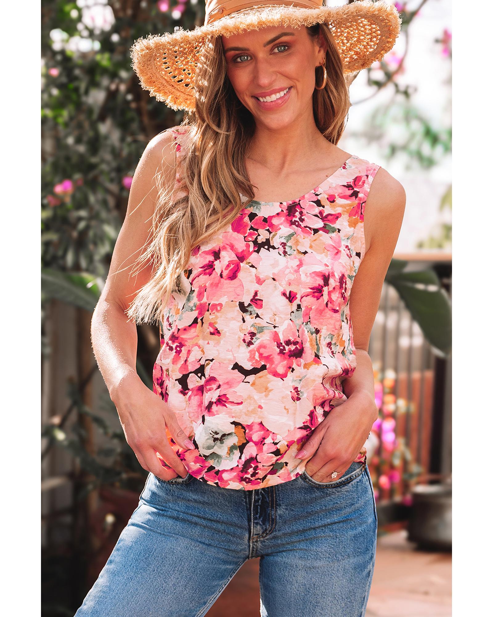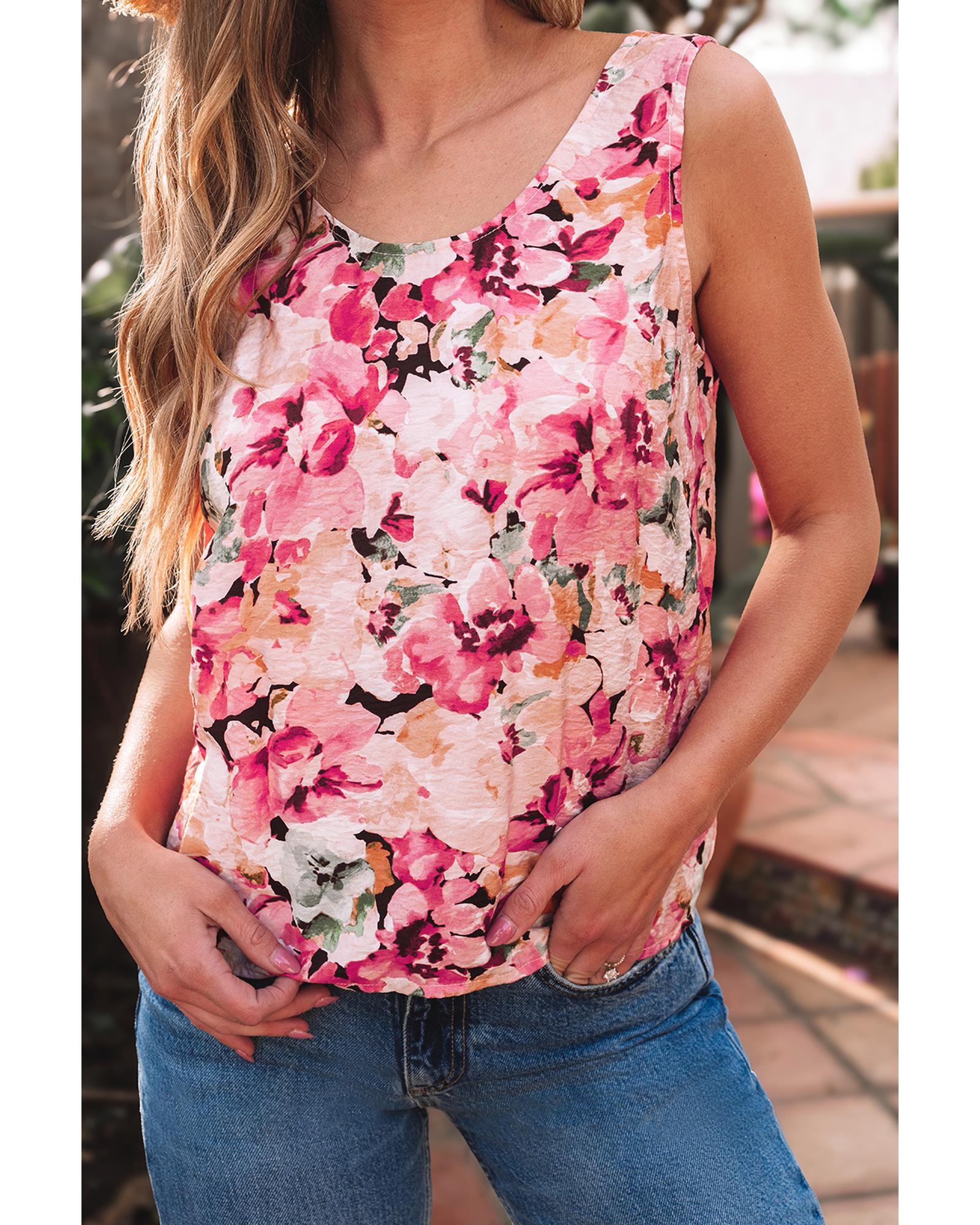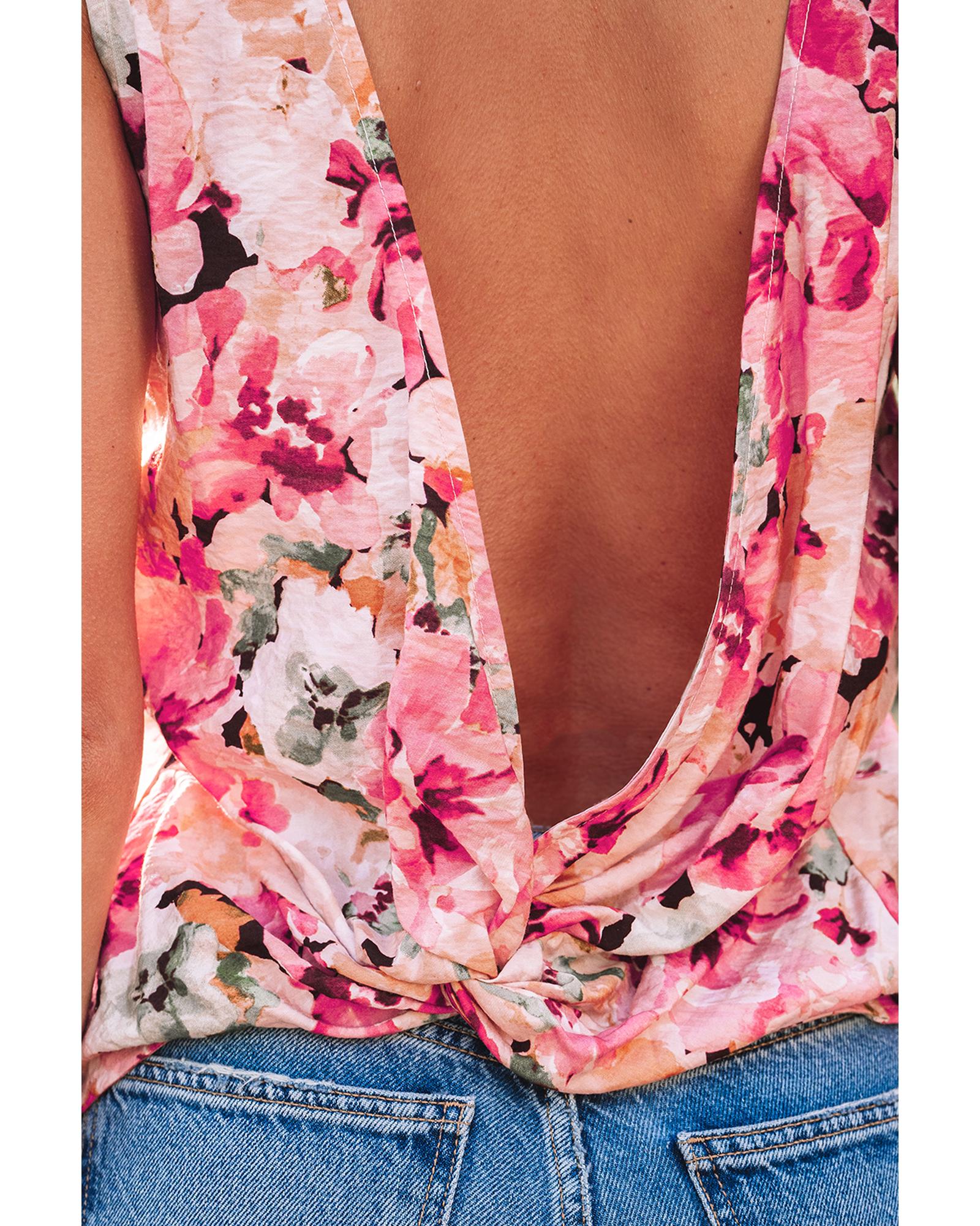 Pink Floral Round Neck Twisted Cut Out Back Tank Top – XL