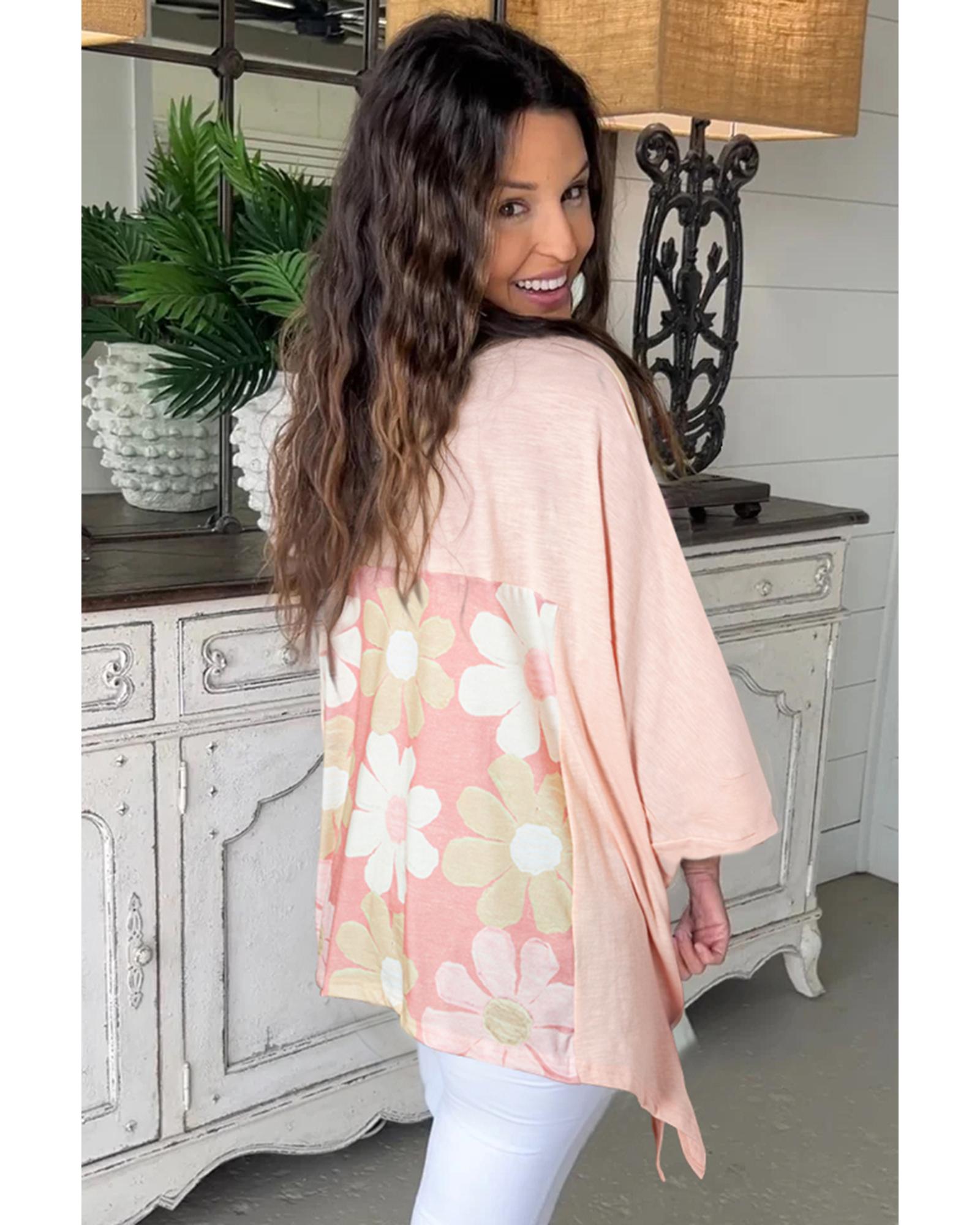 Pink Flower Patchwork Exposed Seam Oversized High Low Top – XL