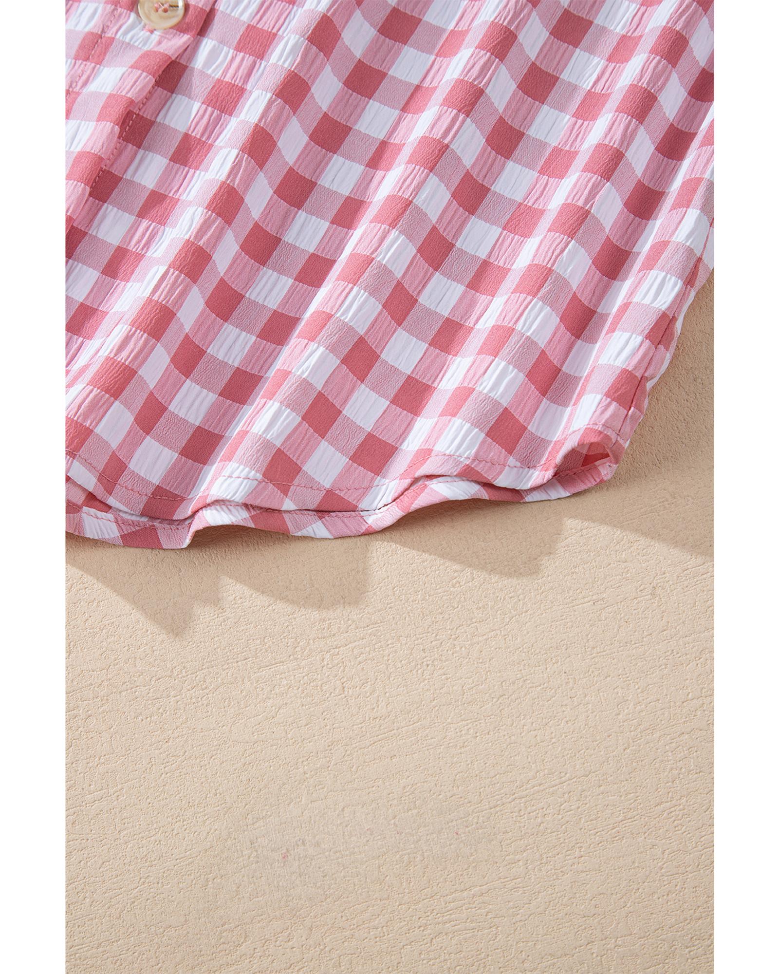 Pink Gingham Print Chest Pockets Buttoned Collared Shirt – L