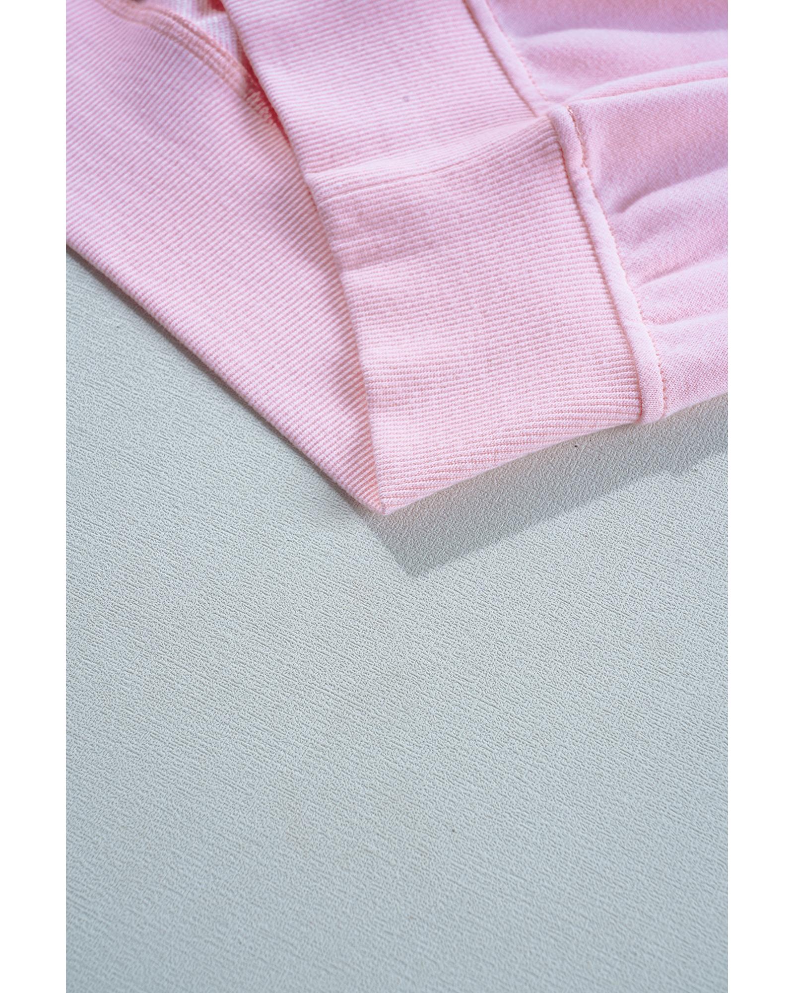 Pink Color Block Patchwork Corded Knit Loose Fit Hooded Blouse - M