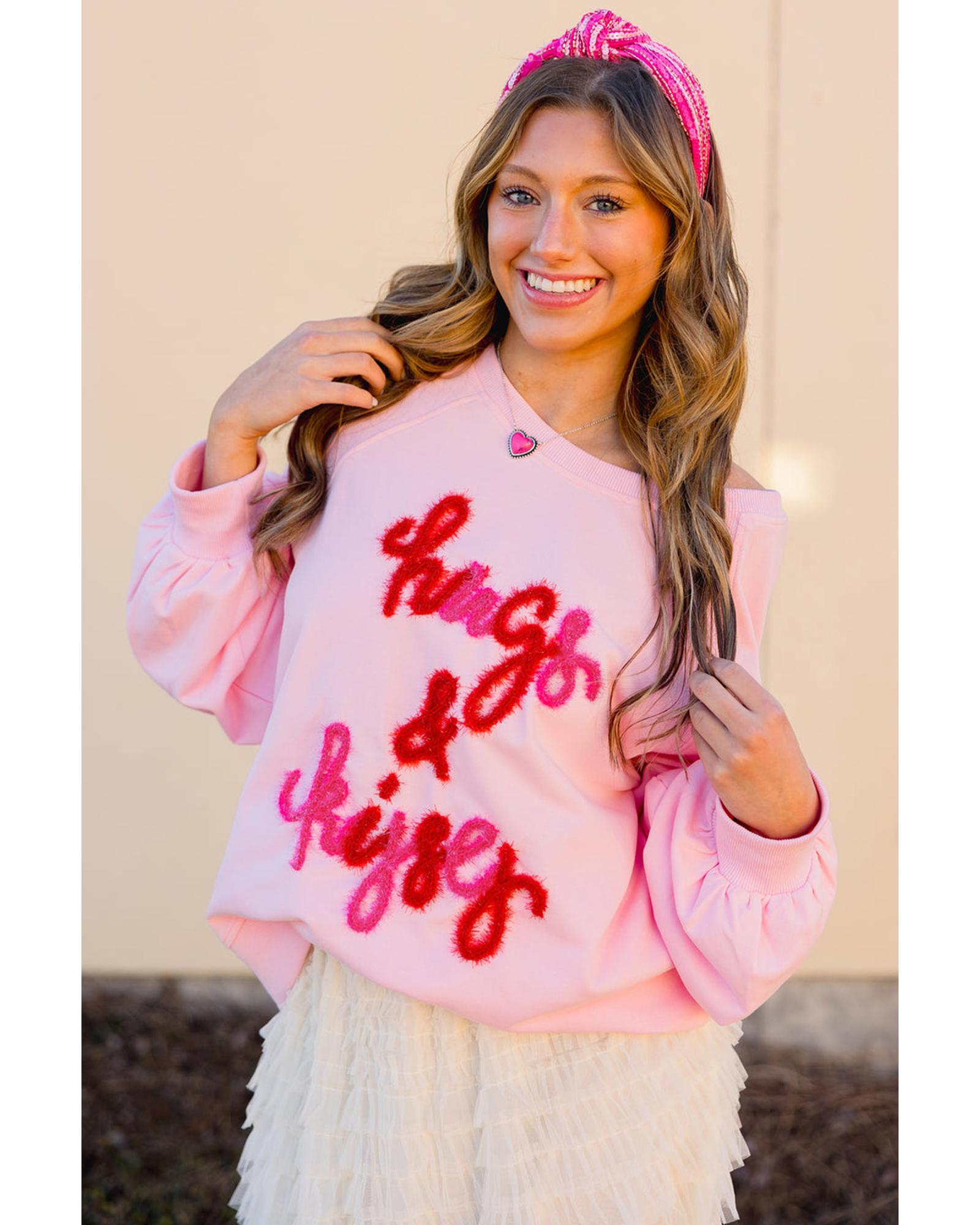 Pink Hugs and Kisses Pop Up Embroidered Raglan Sleeve Sweatshirt – XL