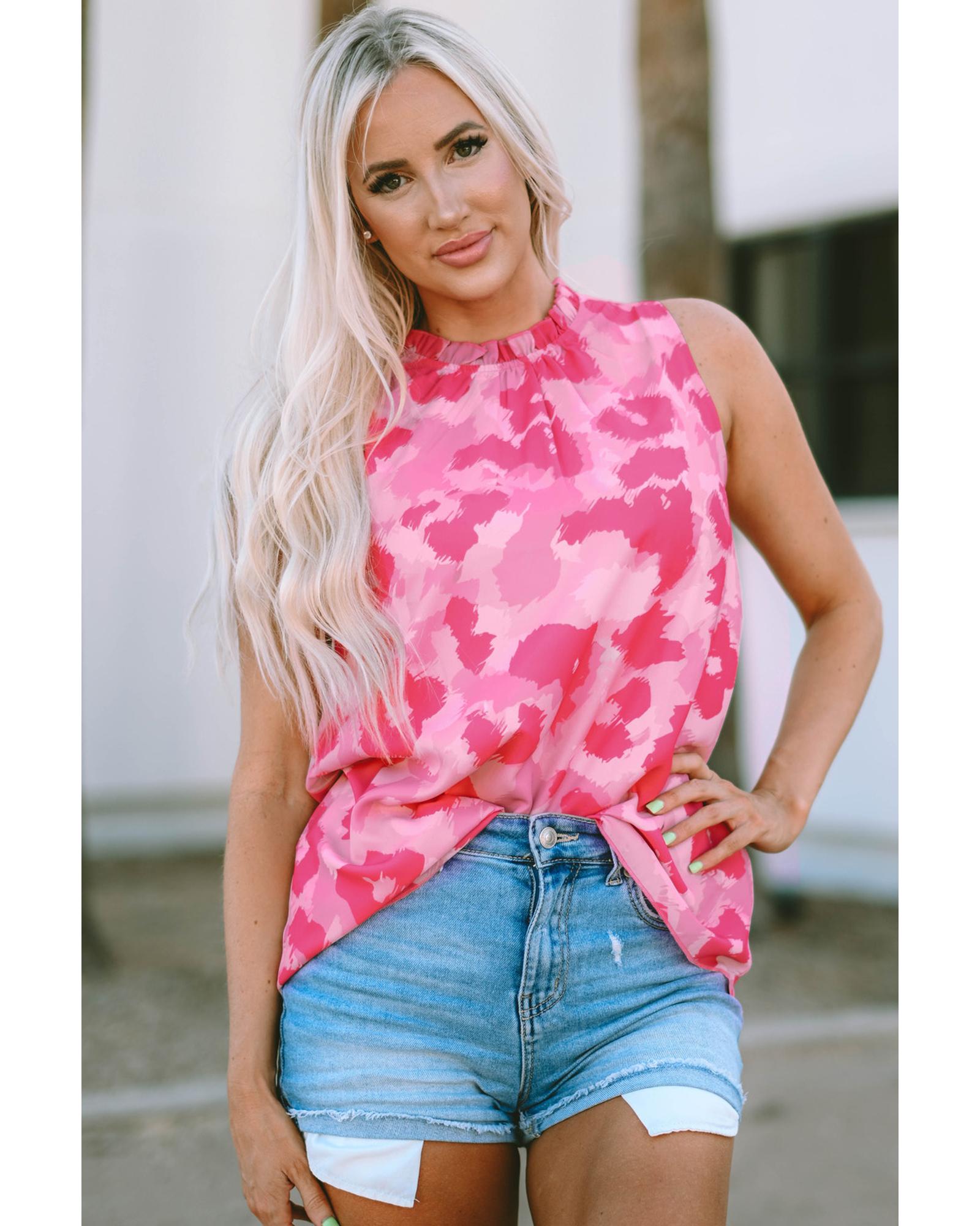 Pink Leopard Frilled Collar Printed Tank Top – L