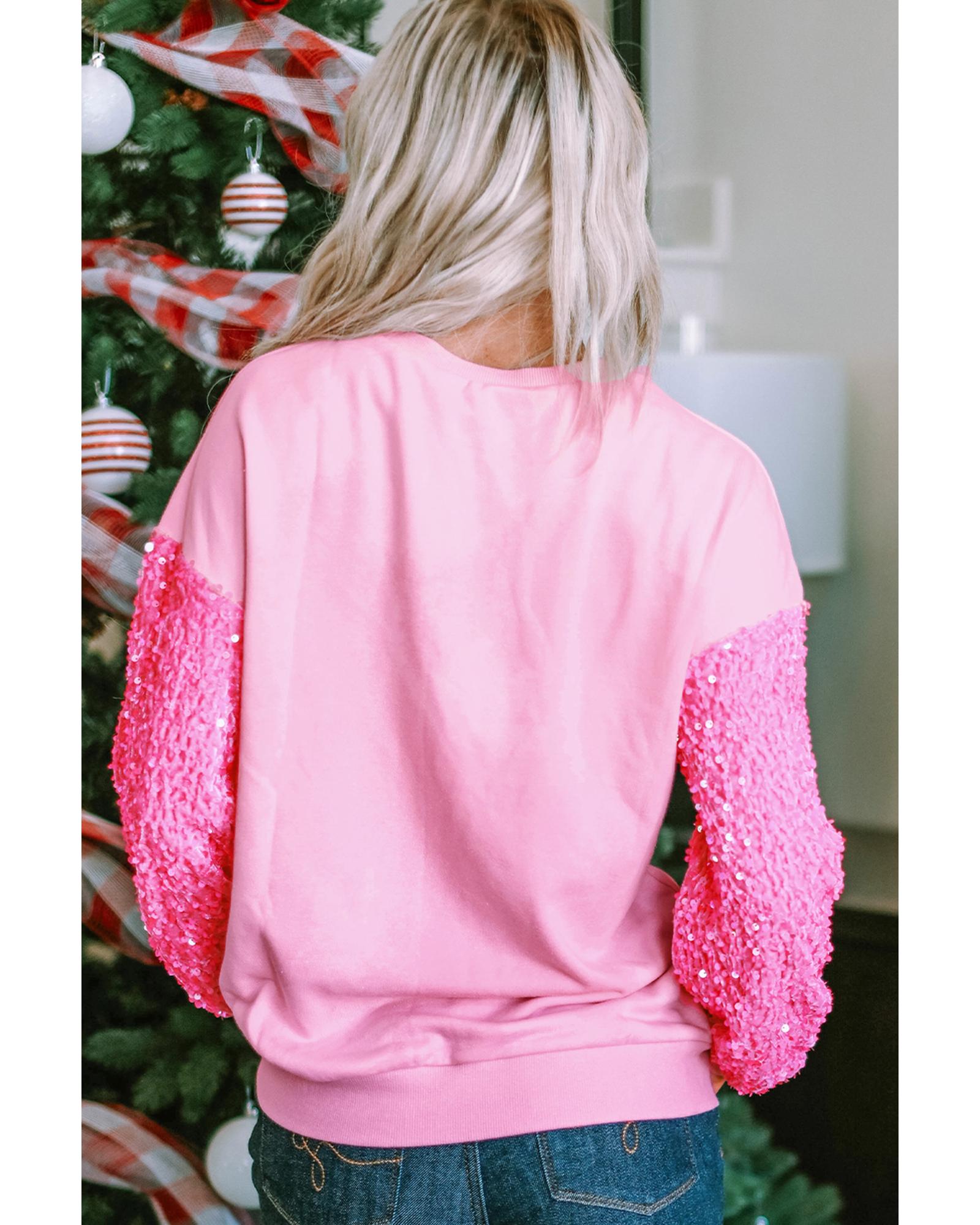 - Pink Leopard Heart Graphic Sequin Patchwork Long Sleeve Valentines Top