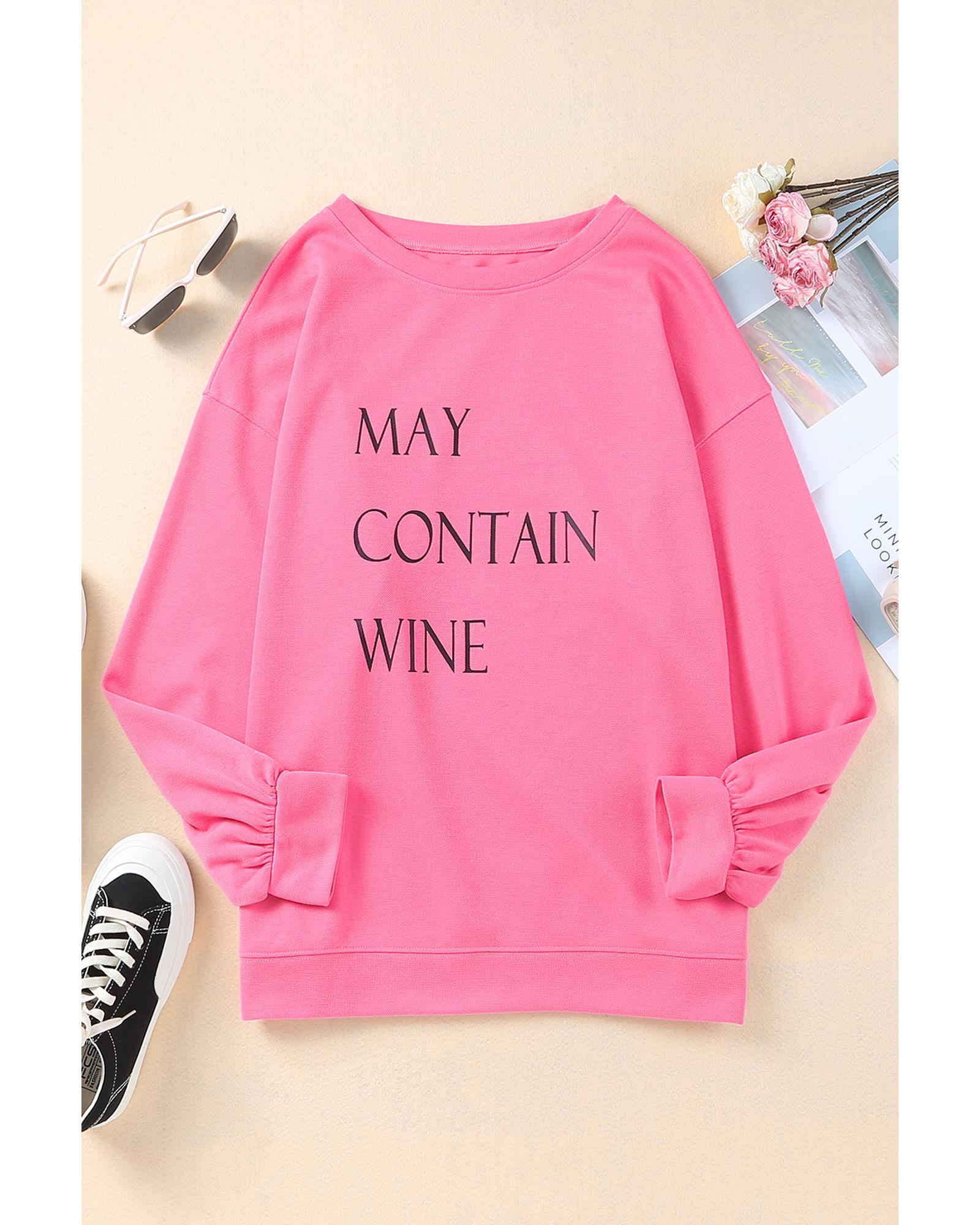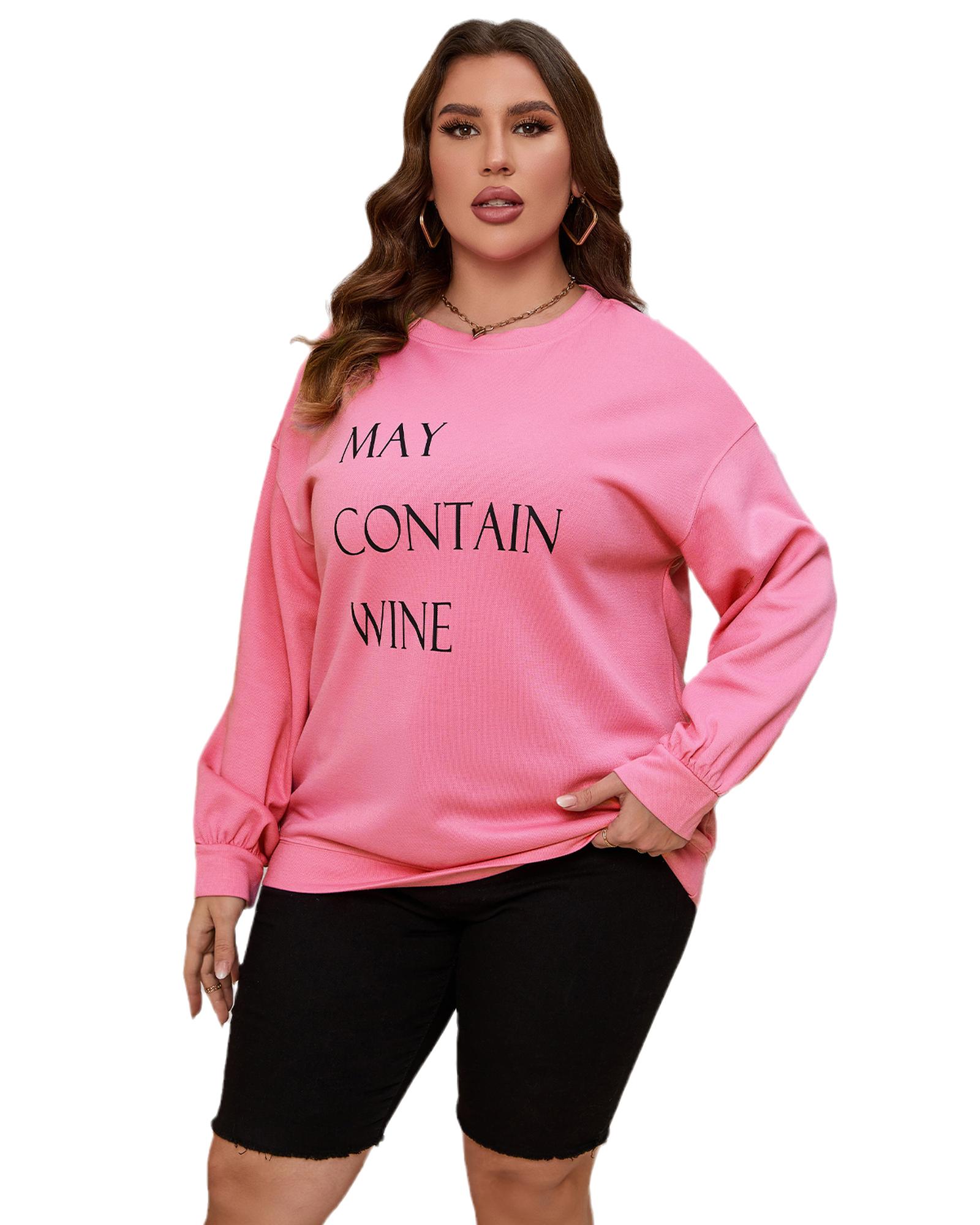 Pink May Contain Wine Crew Neck Plus Size Sweatshirt – 1X