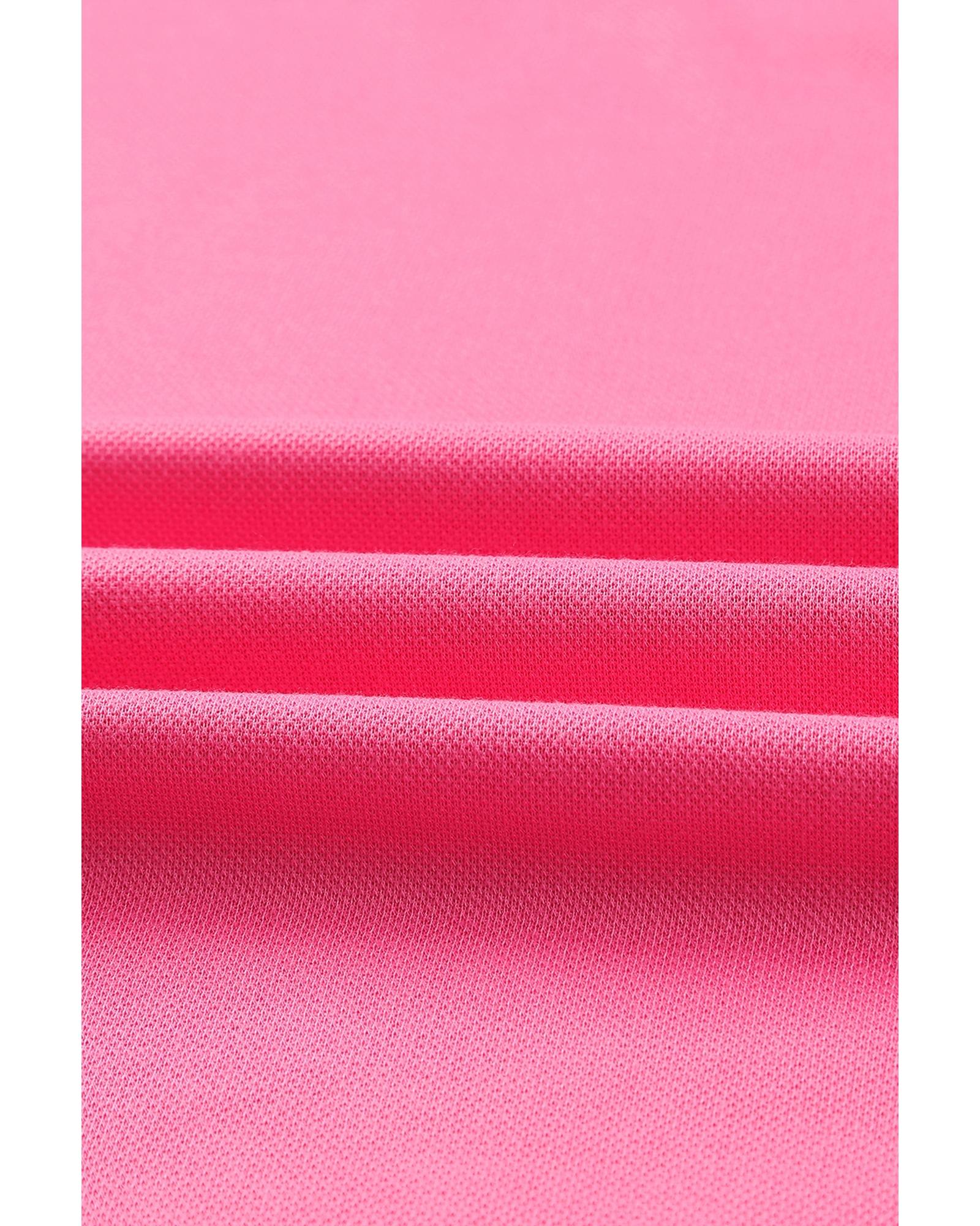 Bright Pink Seamed Back High Low Hem V Neck Cuffed Sleeve Plus Size Tee - 1X