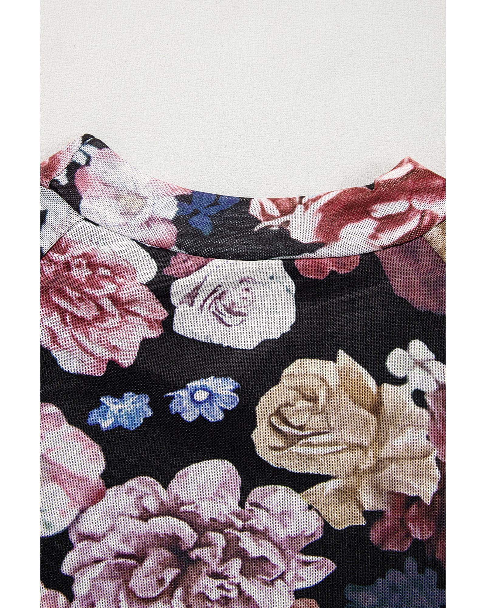• Pink mesh top with floral print
