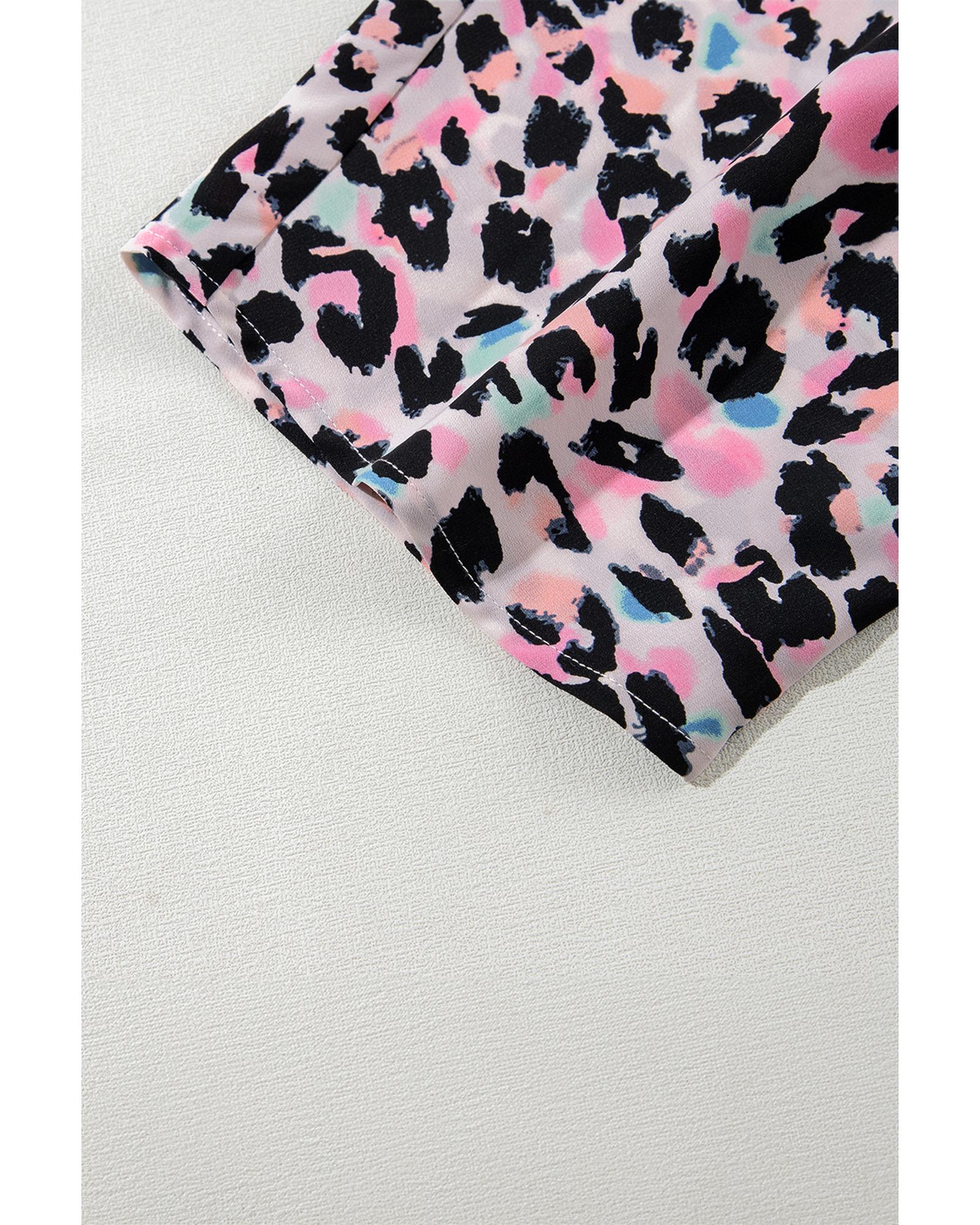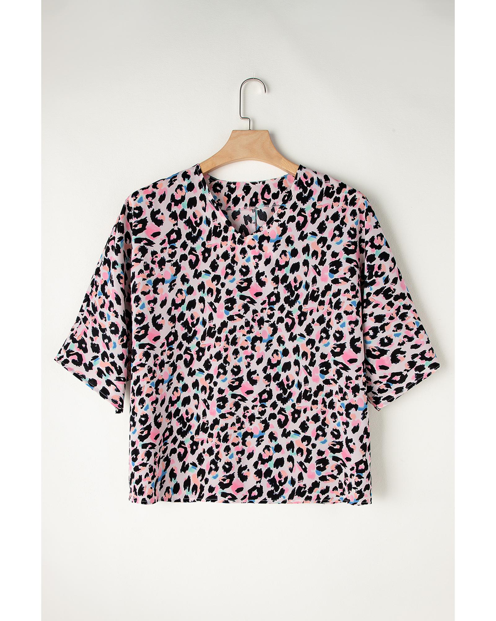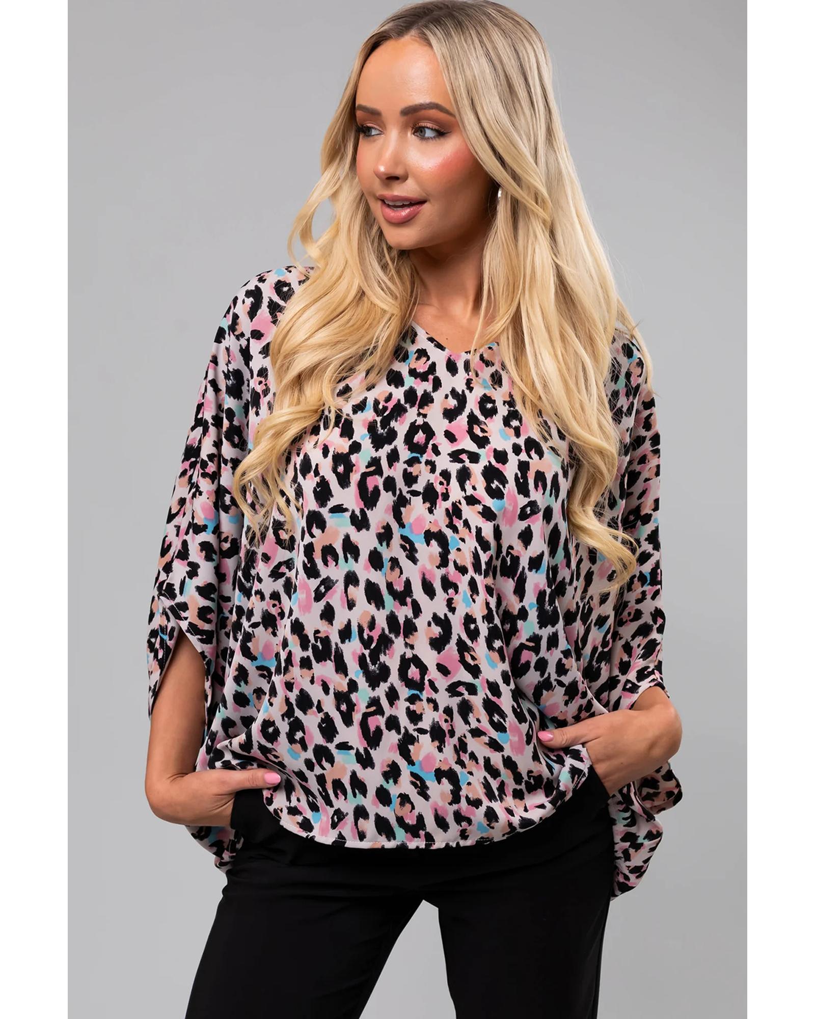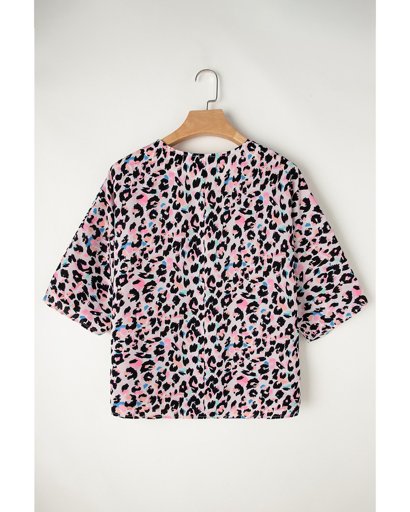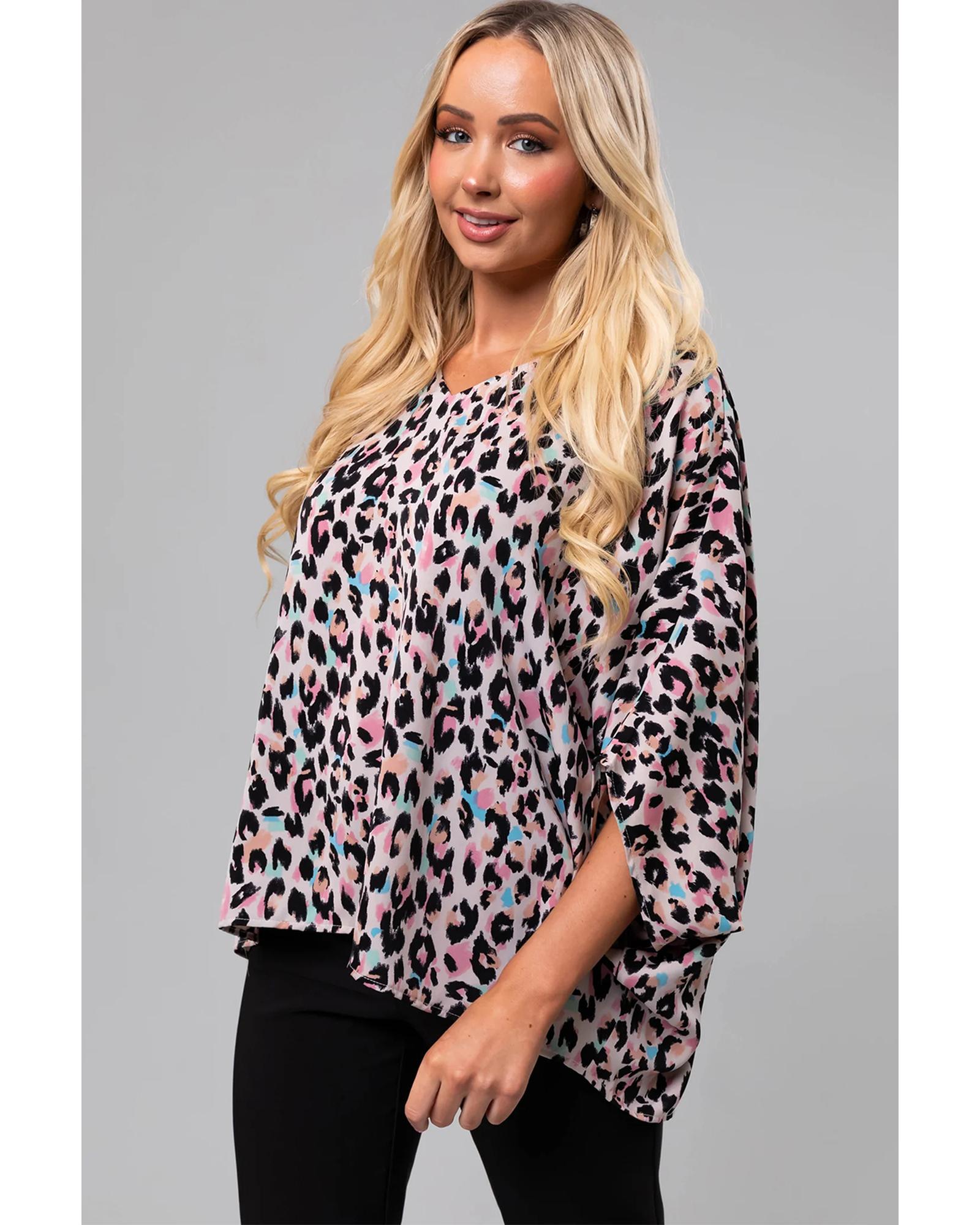 - Pink Multicolor Leopard Print V Neck Oversized Blouse