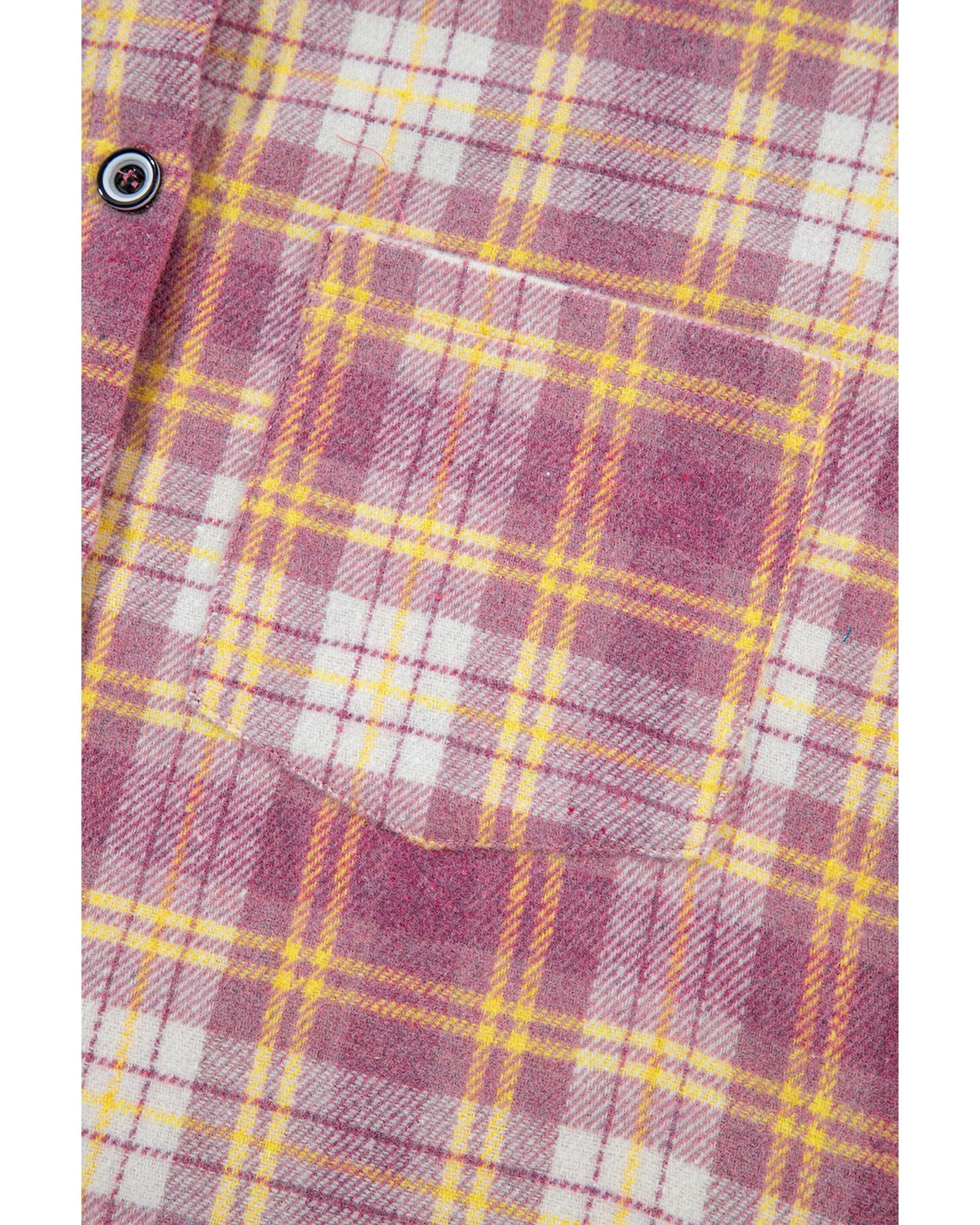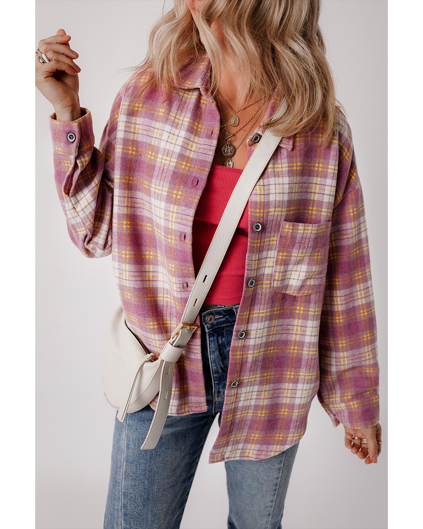 Pink Plaid Print Chest Pocket Long Sleeve Shacket - S
