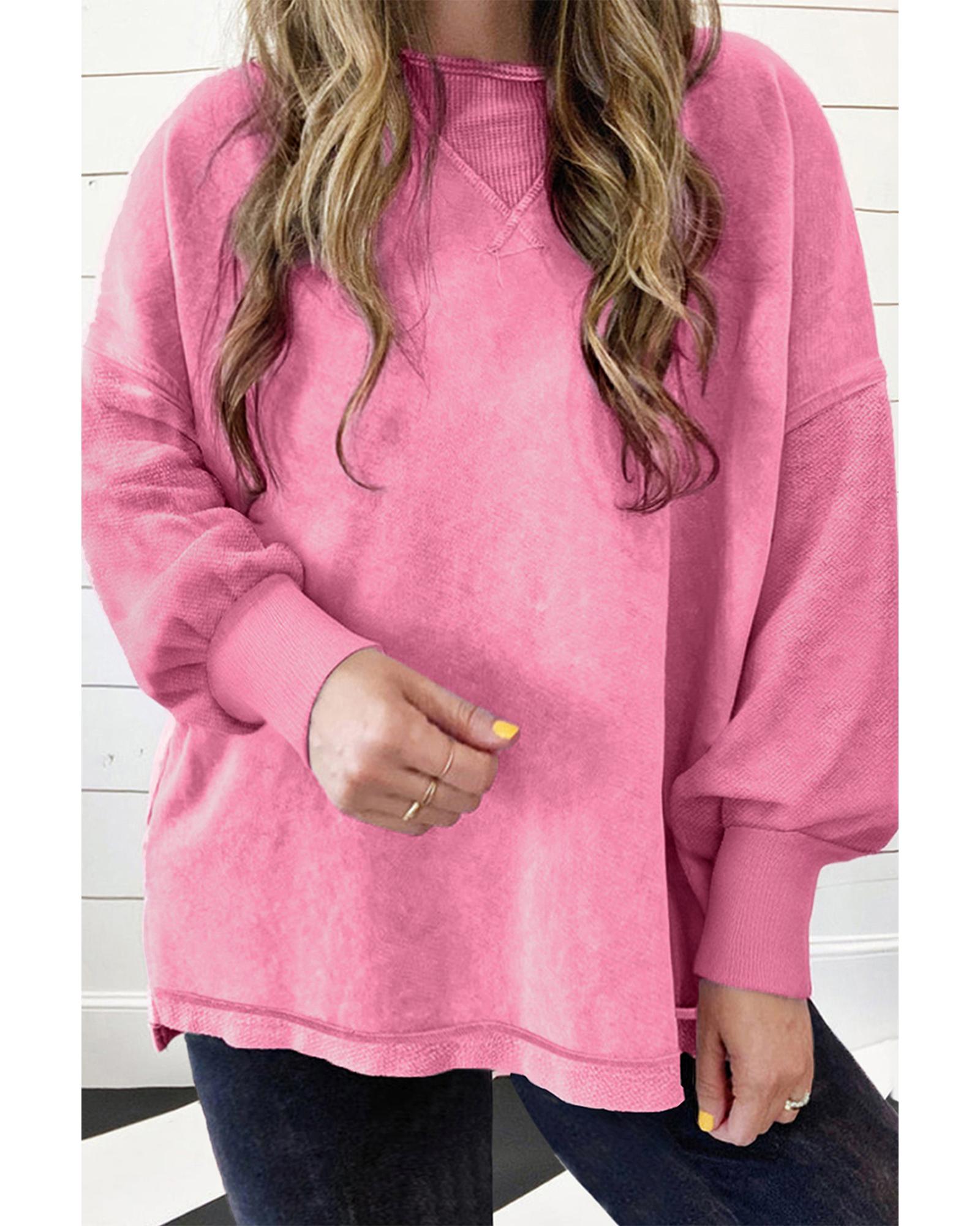 Pink Plus Size Mineral Wash Drop Shoulder Round Neck Sweatshirt – 2X