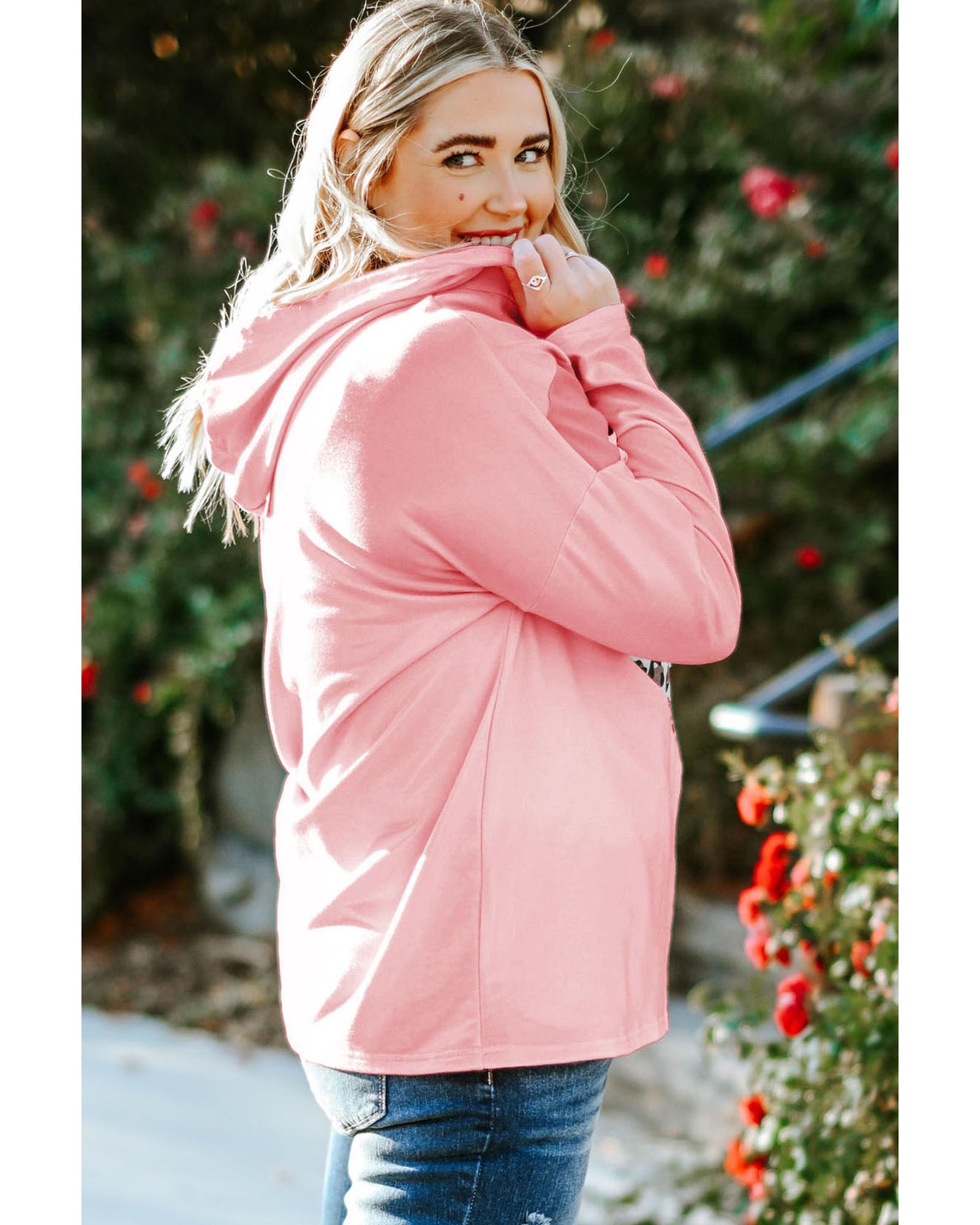 Pink Plus Size Taupe Chevron Hooded Top – 2X
