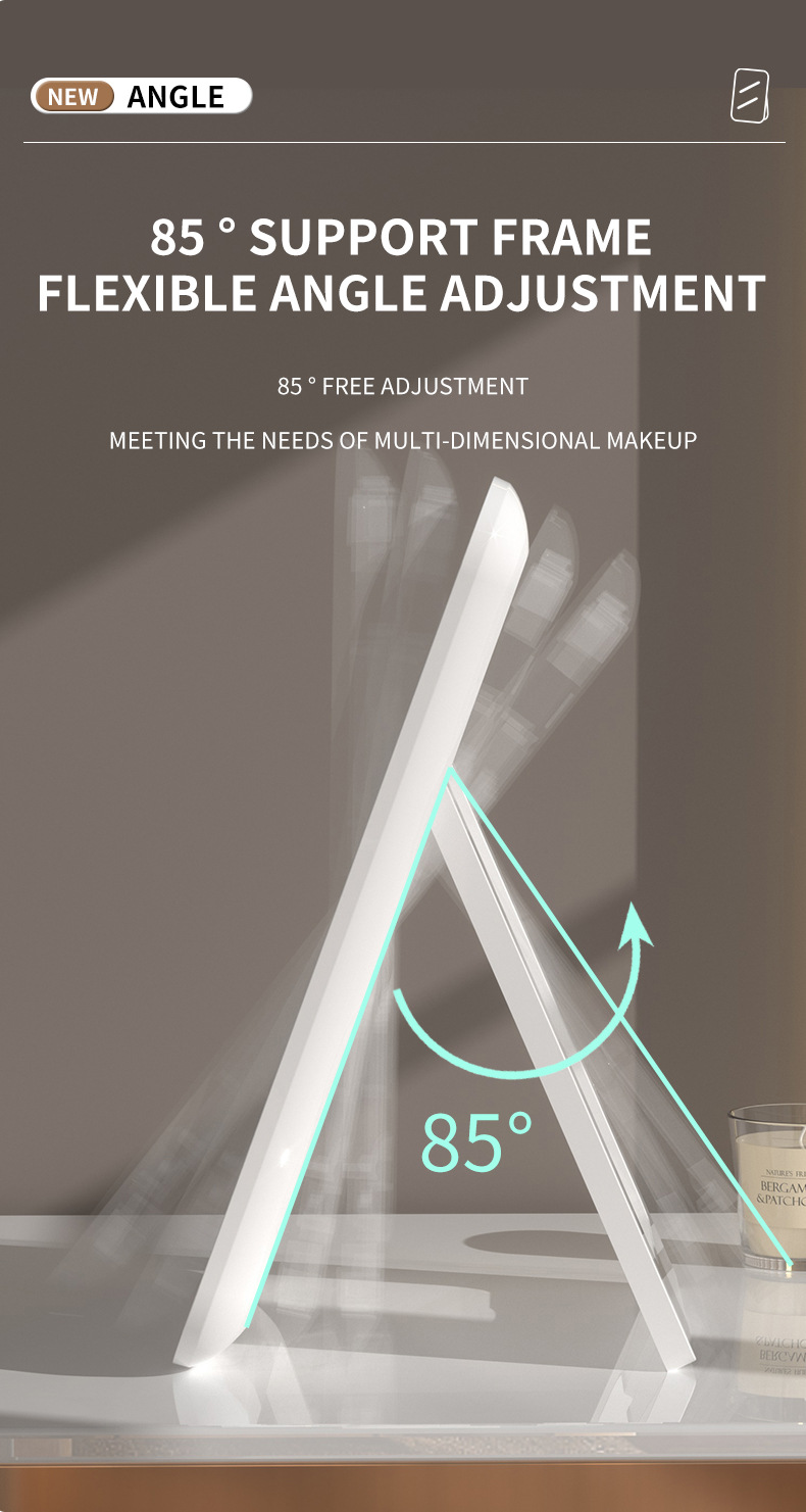 - Flexible Angle Adjustment: Features an 85-degree rotating support bracket, allowing you to tilt and fix the mirror at your preferred angle for comfortable, multi-dimensional makeup application.