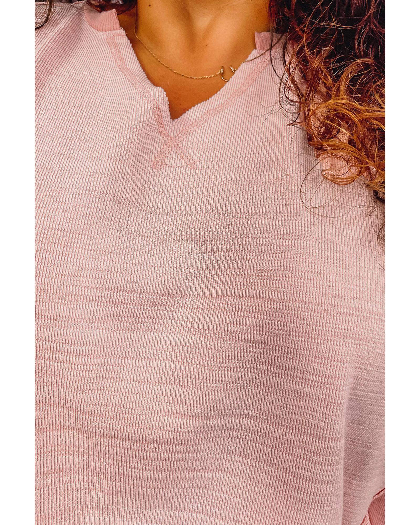 Pink Raw Cut Notched Neck Plus Size French Terry Hoodie – 2X