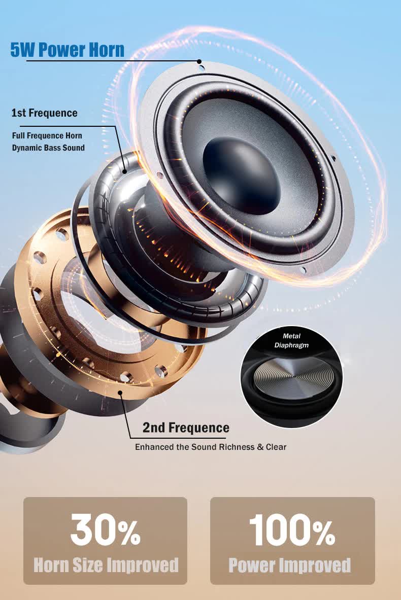 - Impressive Sound Quality: Equipped with a 45mm, 5W speaker driver delivering clear, room-filling 360�� stereo sound for an enjoyable listening experience.