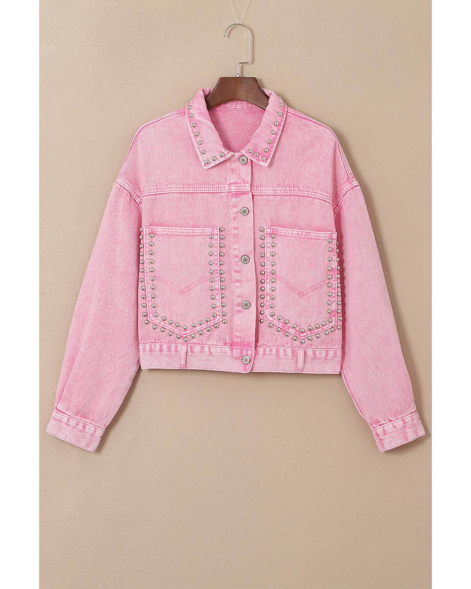 Pink Rivet Studded Pocketed Denim Jacket – L