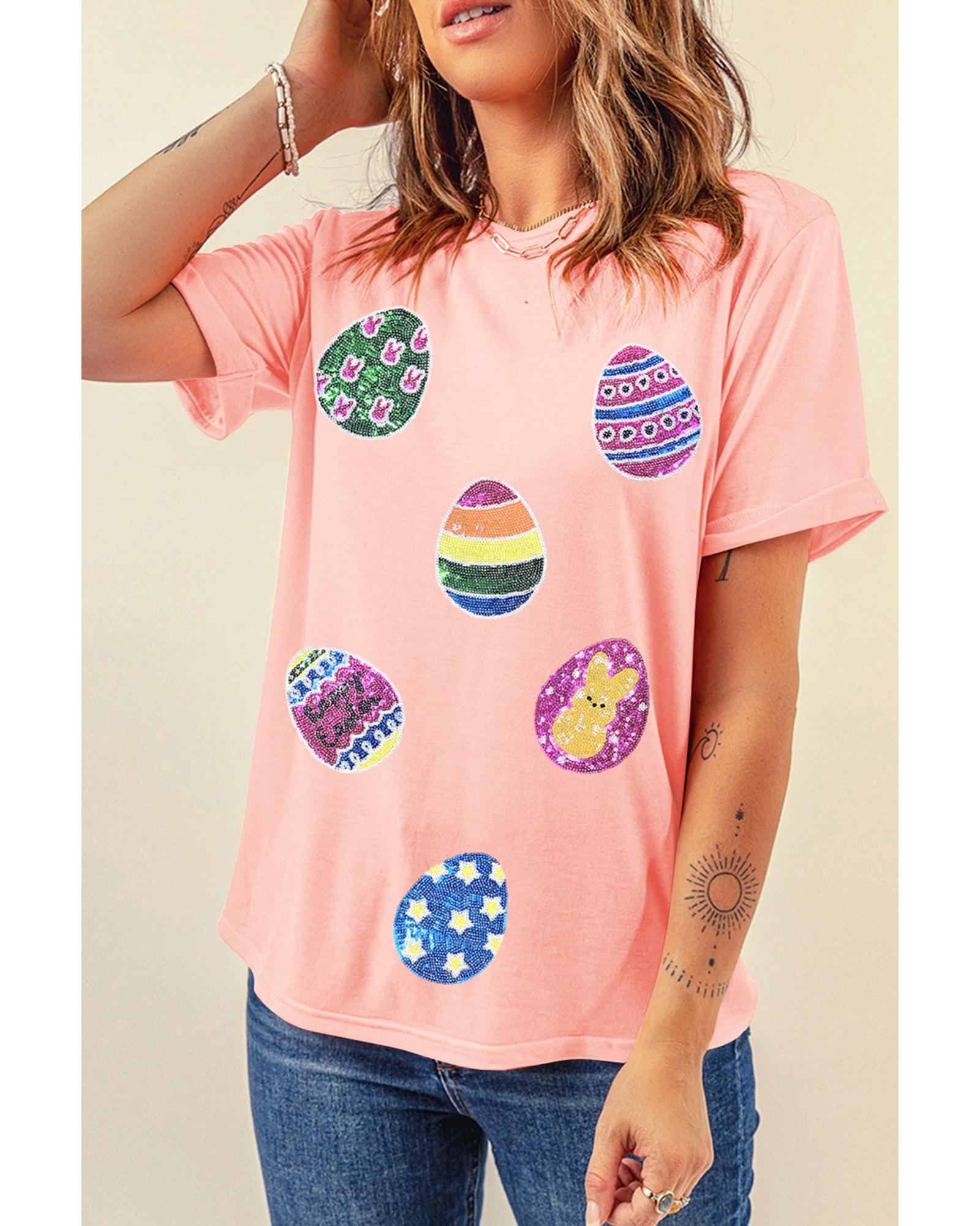 • Pink Sequin Easter Eggs Graphic Crewneck T