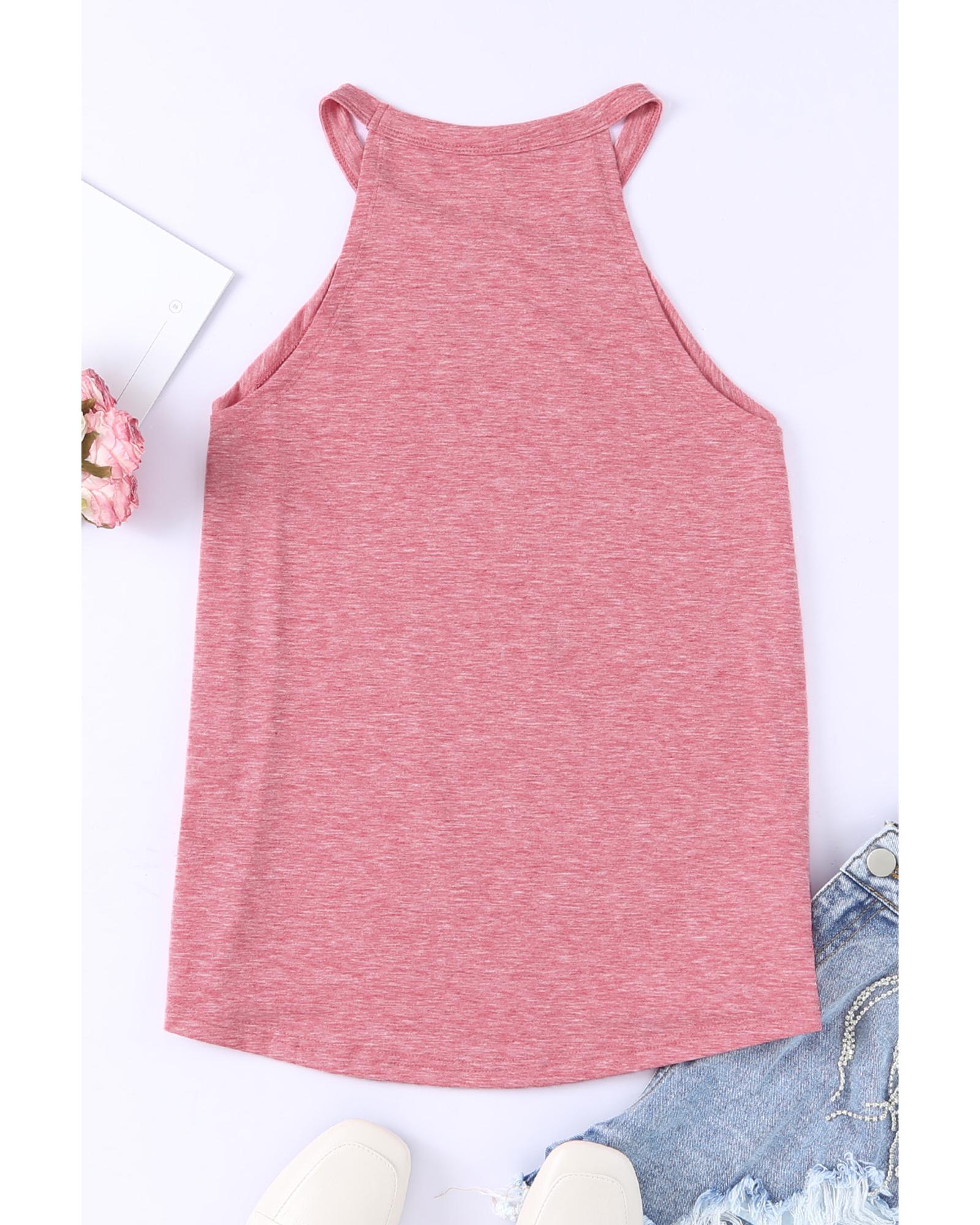- Pink solid color crew neck tank top