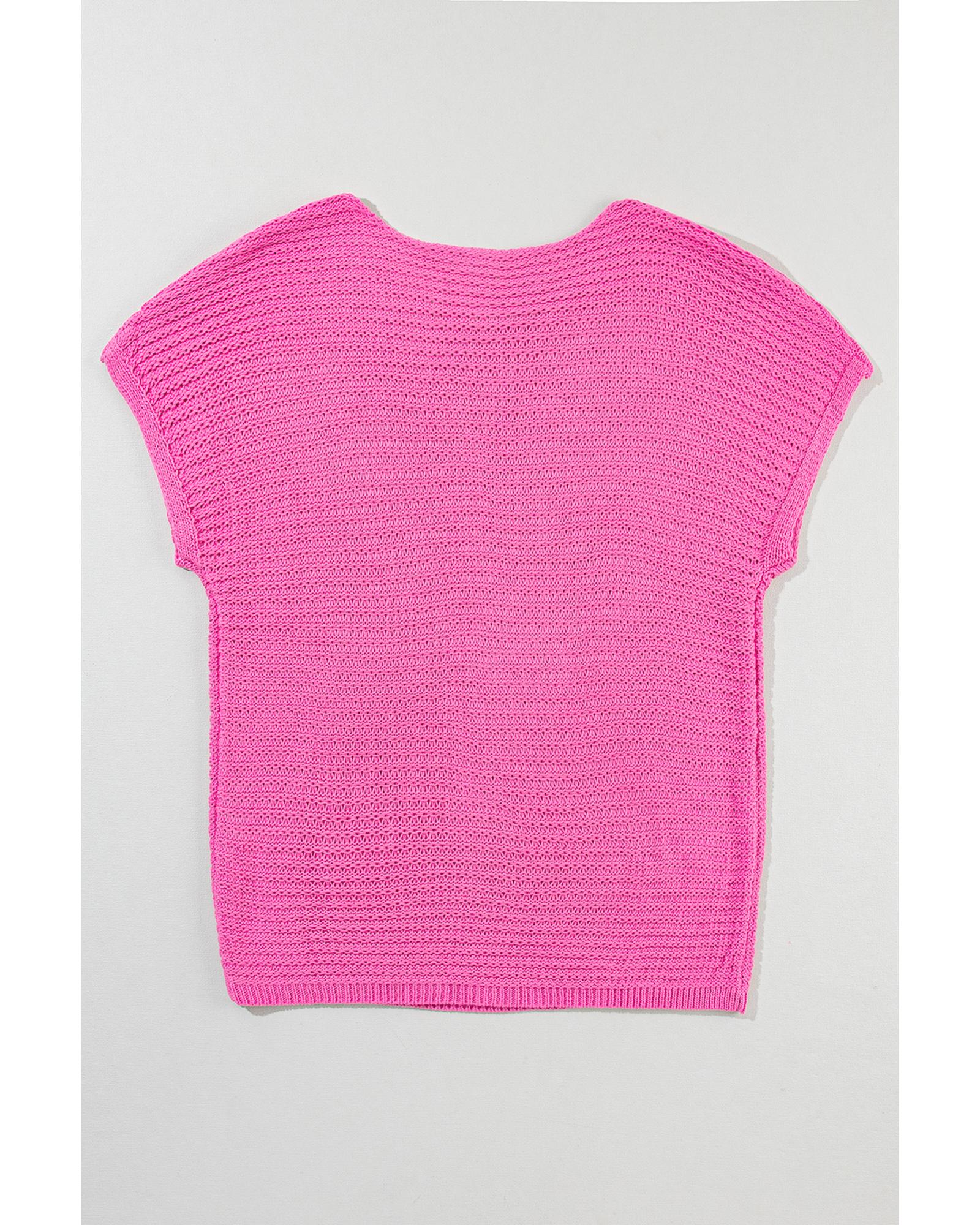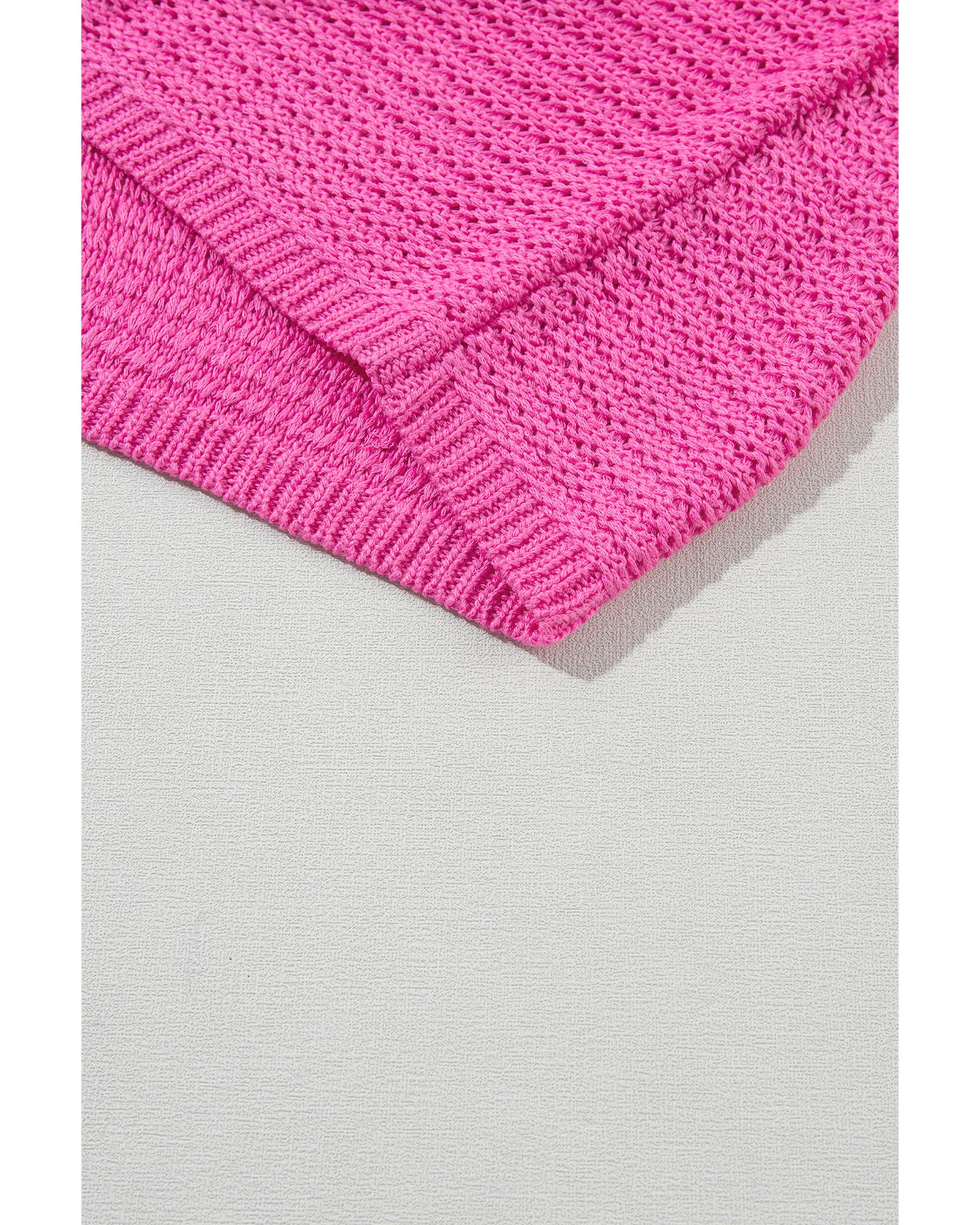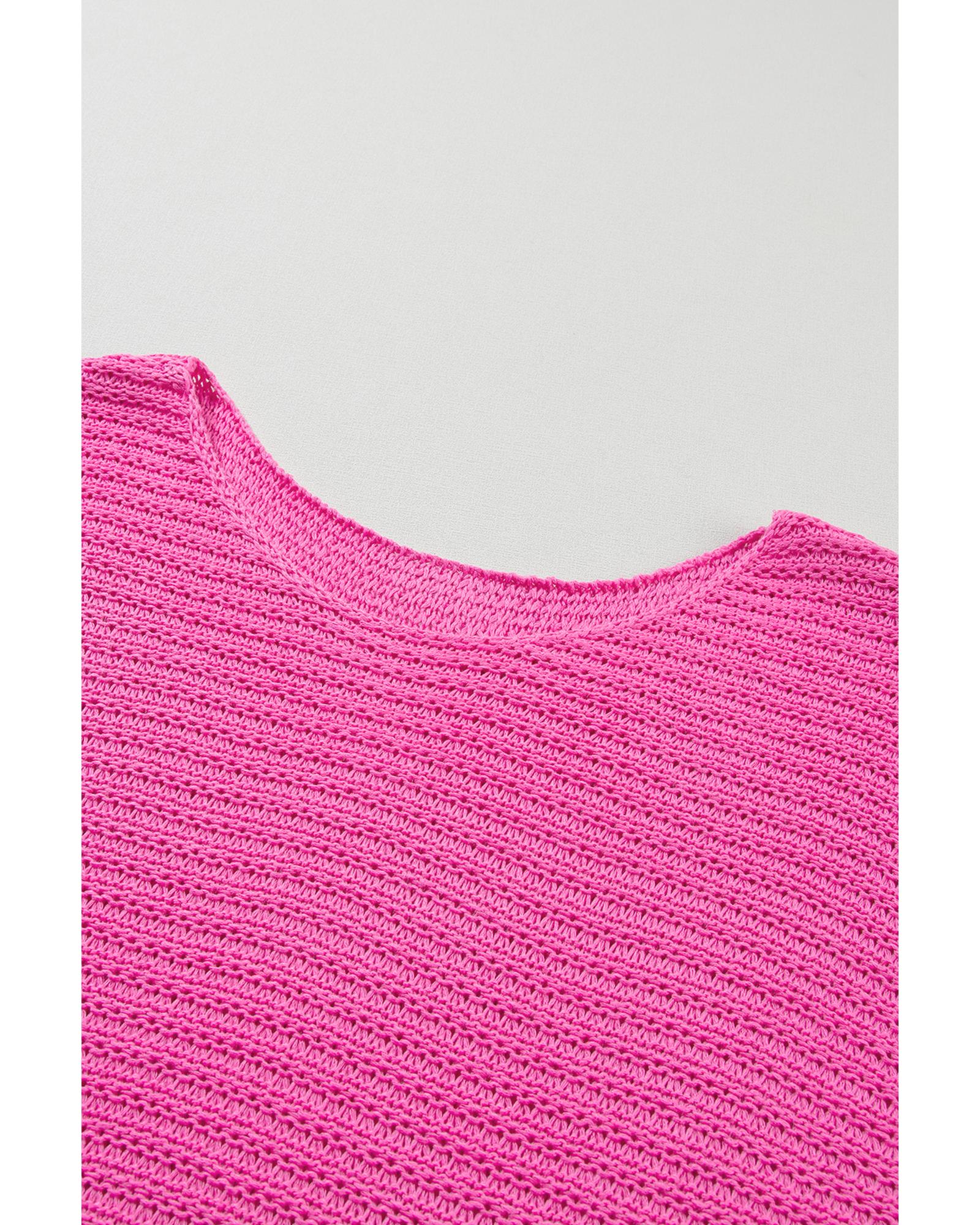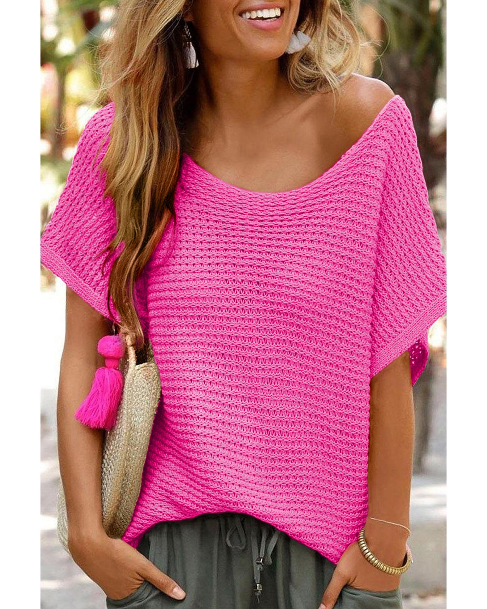 Pink Solid Loose Knit Short Dolman Sleeve Sweater – XL
