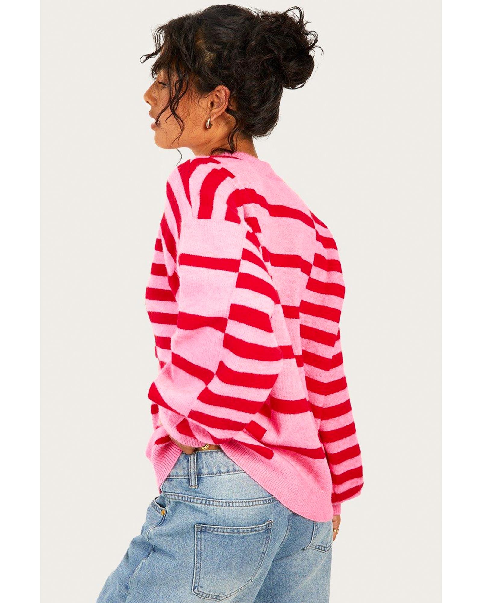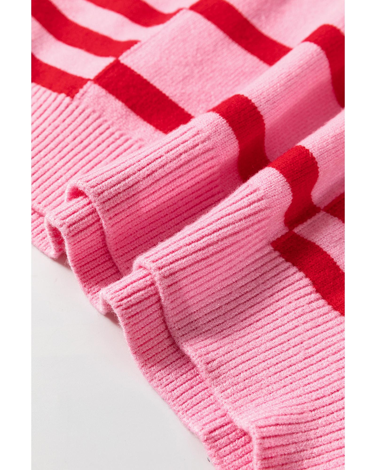 Pink Stripe Bubble Sleeve Drop Shoulder Ribbed Trim Sweater – S